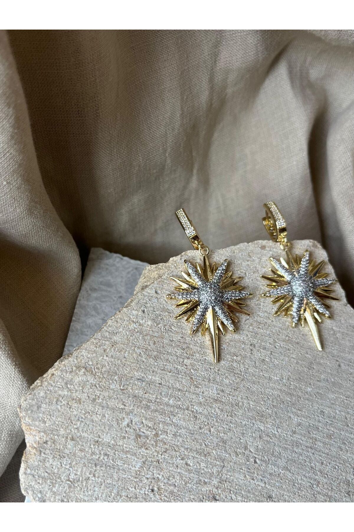 Altın Renkli Taşlı Kuzey Yıldızı Küpe Altın Renkli Taşlı Kuzey Yıldızı Küpe KUPE0051 تک سایز