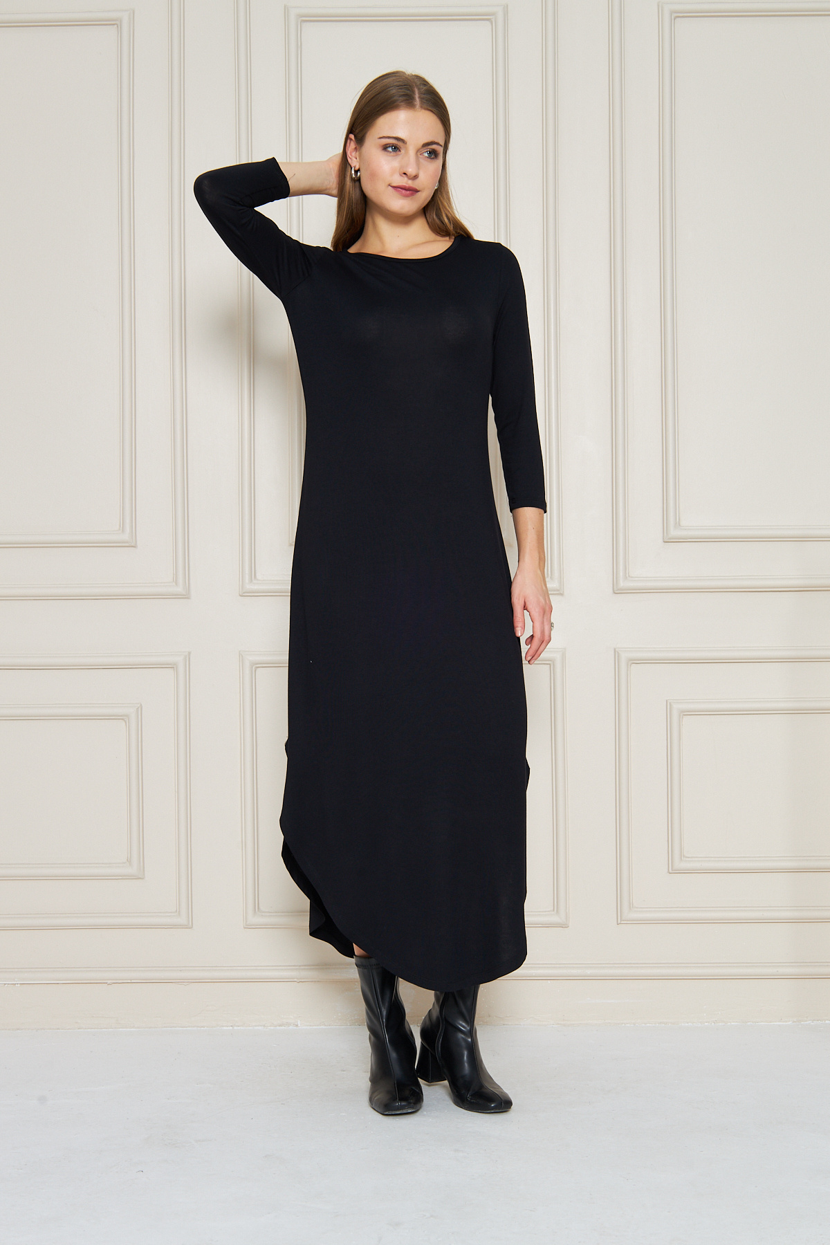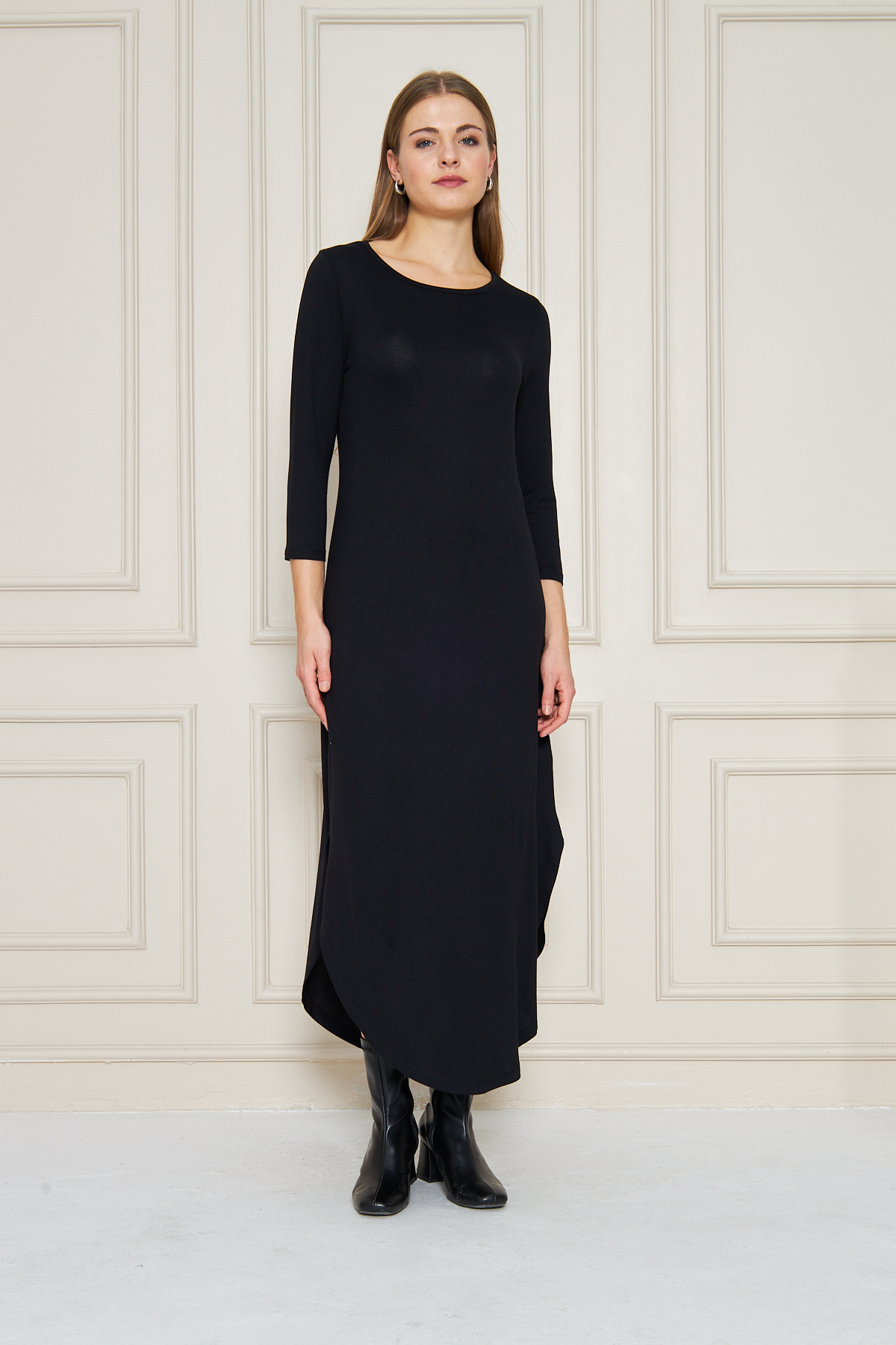 Kadın Uzun Kollu Etegi Oval Yırtmajlı Midi Boy Elbise Kadın Uzun Kollu Etegi Oval Yırtmajlı Midi Boy Elbise ESP-E00239 2XL