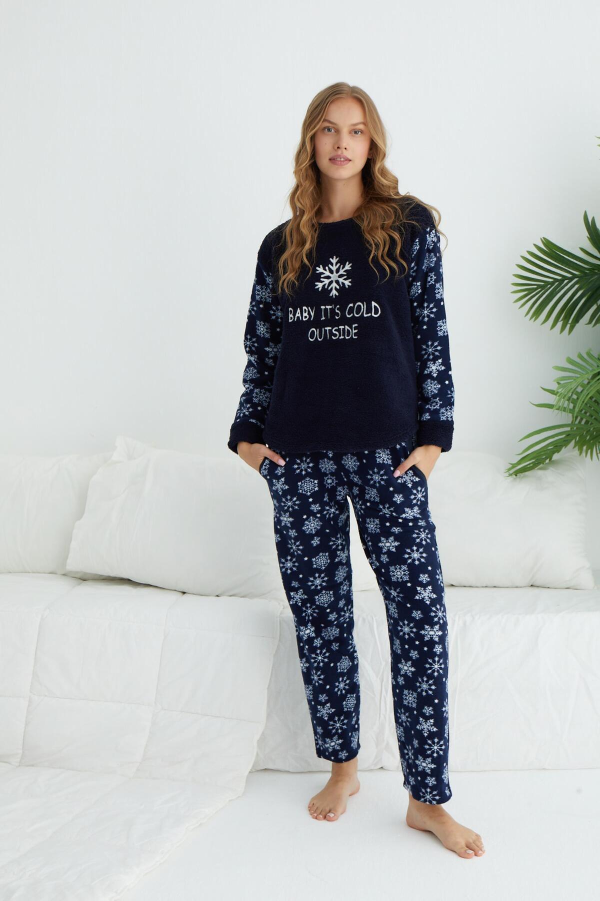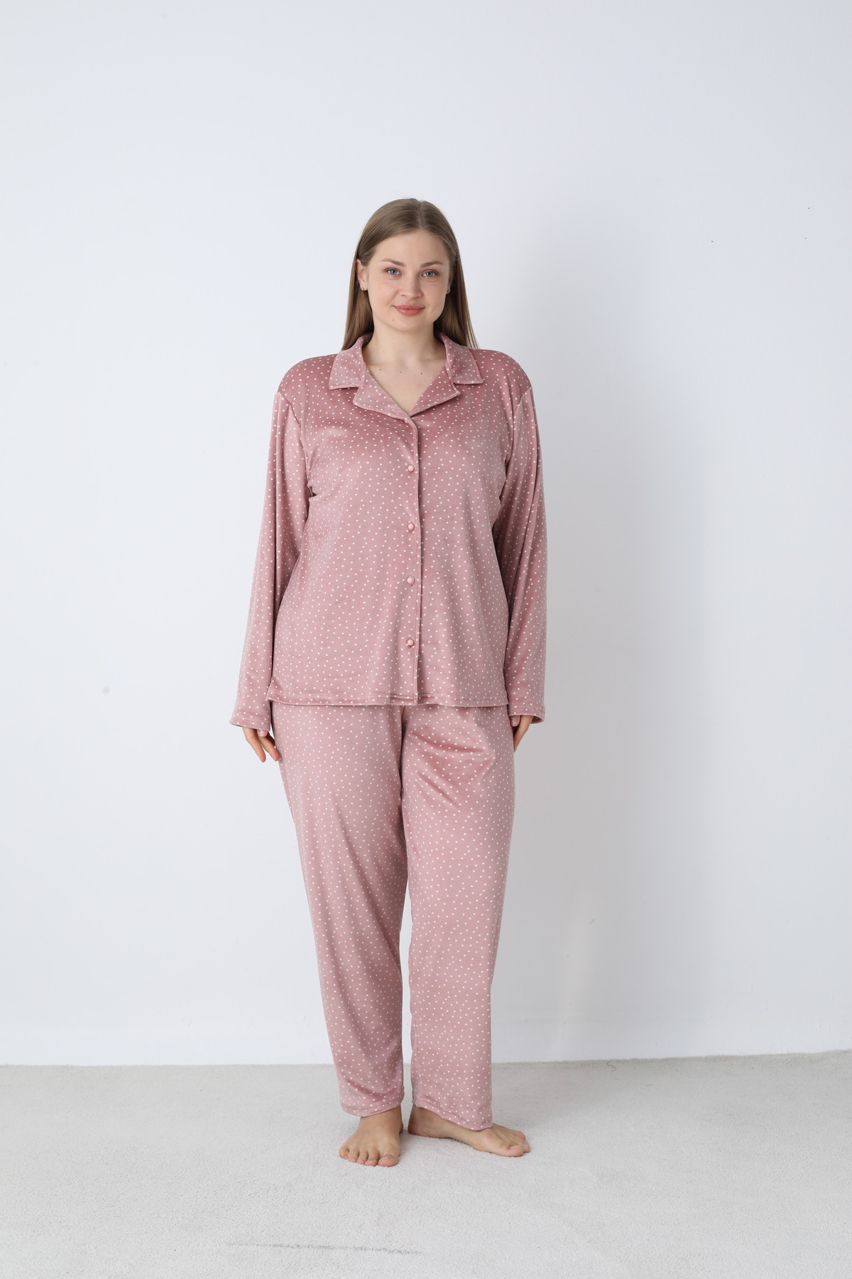Kadın Kışlık Önden Düğmeli Kiraz Desenli Kadife Pijama Takımı Lacivert Kadın Kışlık Önden Düğmeli Kiraz Desenli Kadife Pijama Takımı Lacivert 25367 2XL