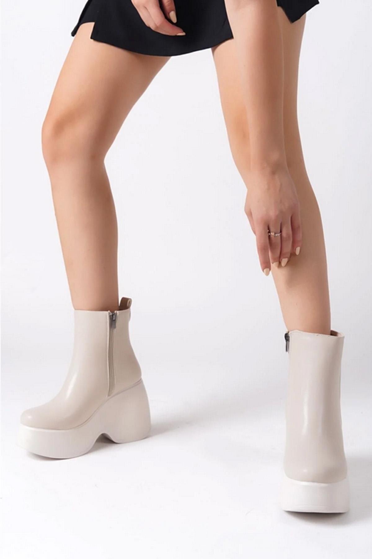Kadın Celsi Krem Cilt Yandan Fermuarlı 9 cm Yüksek Dolgu Topuklu Mevsimlik Kadın Kısa Bot Bootie Kadın Celsi Krem Cilt Yandan Fermuarlı 9 cm Yüksek Dolgu Topuklu Mevsimlik Kadın Kısa Bot Bootie 26W0CELSİ 40