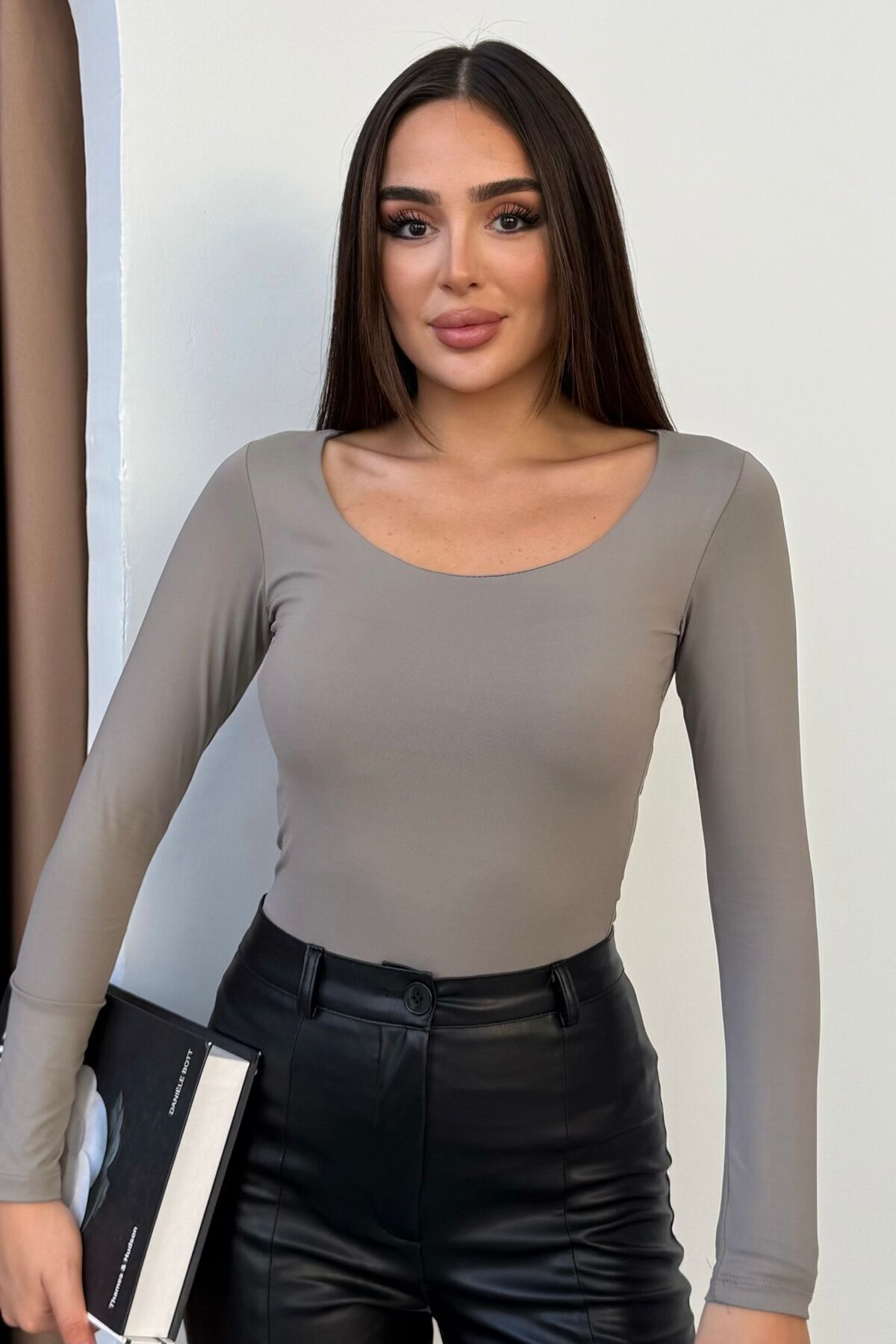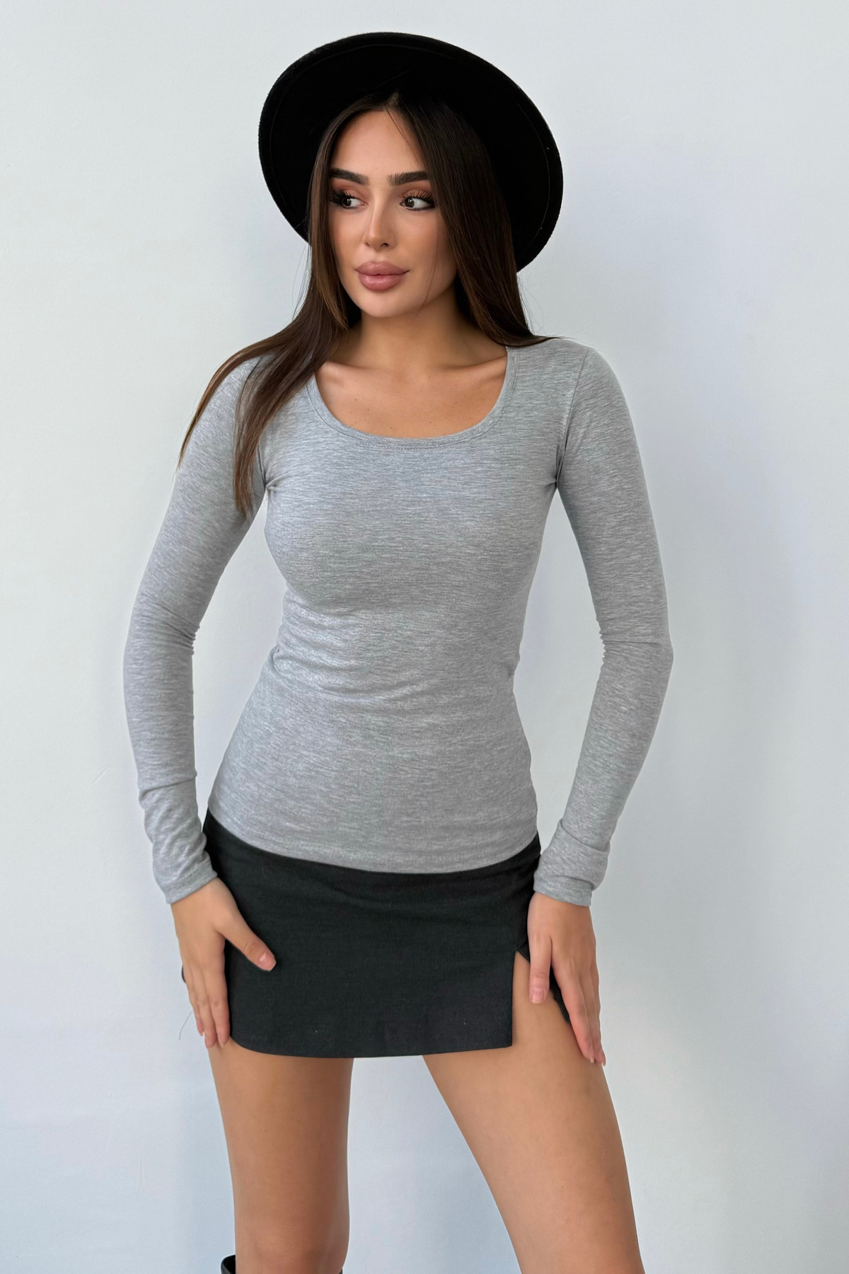 Kadın Melanj Gri Kare Yaka Uzun Kol Basic Body Kadın Melanj Gri Kare Yaka Uzun Kol Basic Body TPZ2803 XL