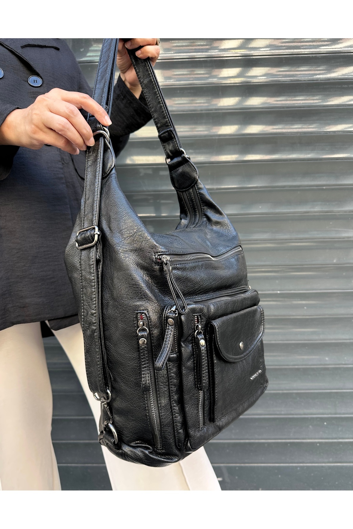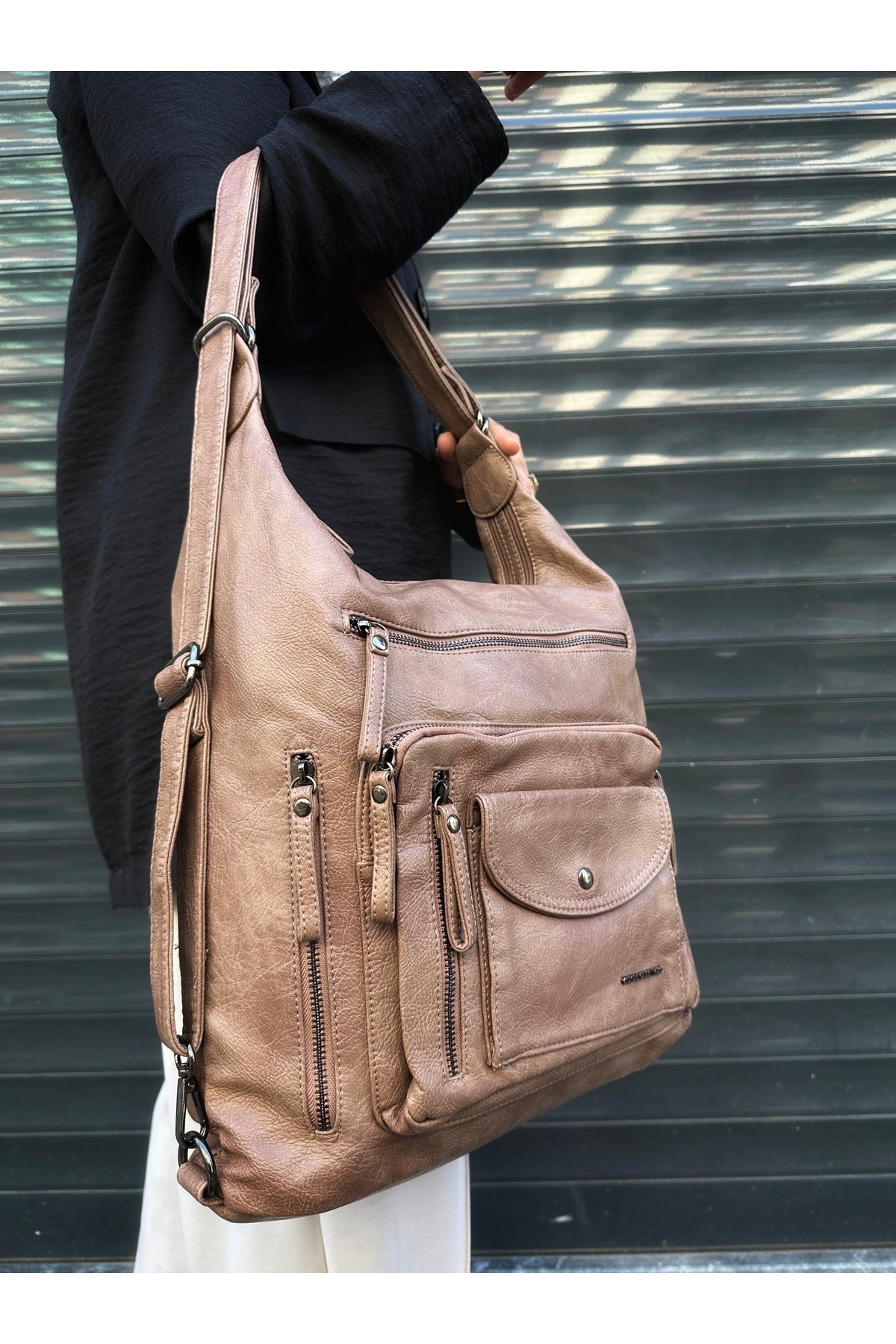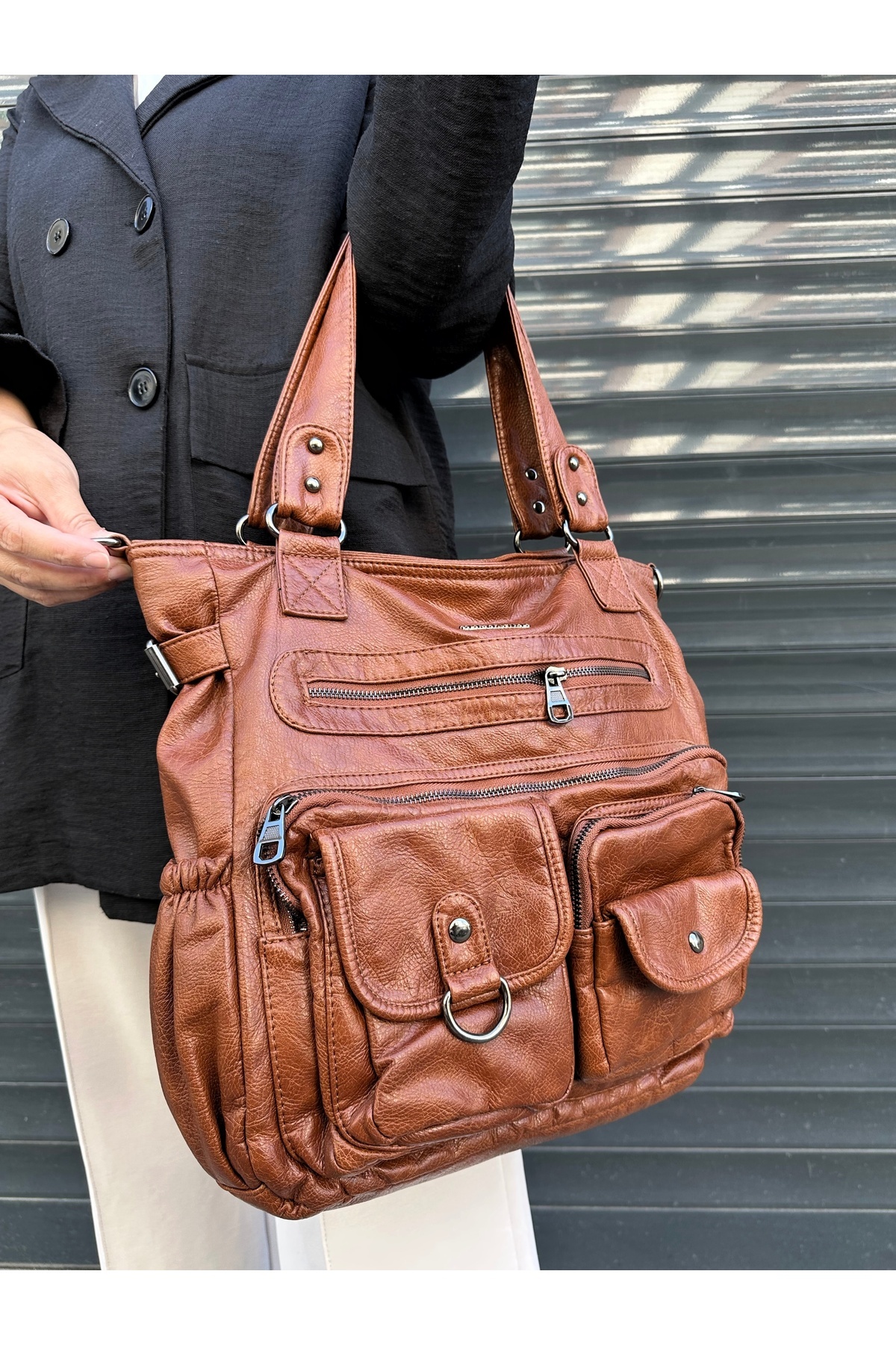 Orijinal Kadın Çok Bölmeli Yıkamalı Deri Şık Sırt Ve Omuz Çantası Orijinal Kadın Çok Bölmeli Yıkamalı Deri Şık Sırt Ve Omuz Çantası JPM10009 Standart