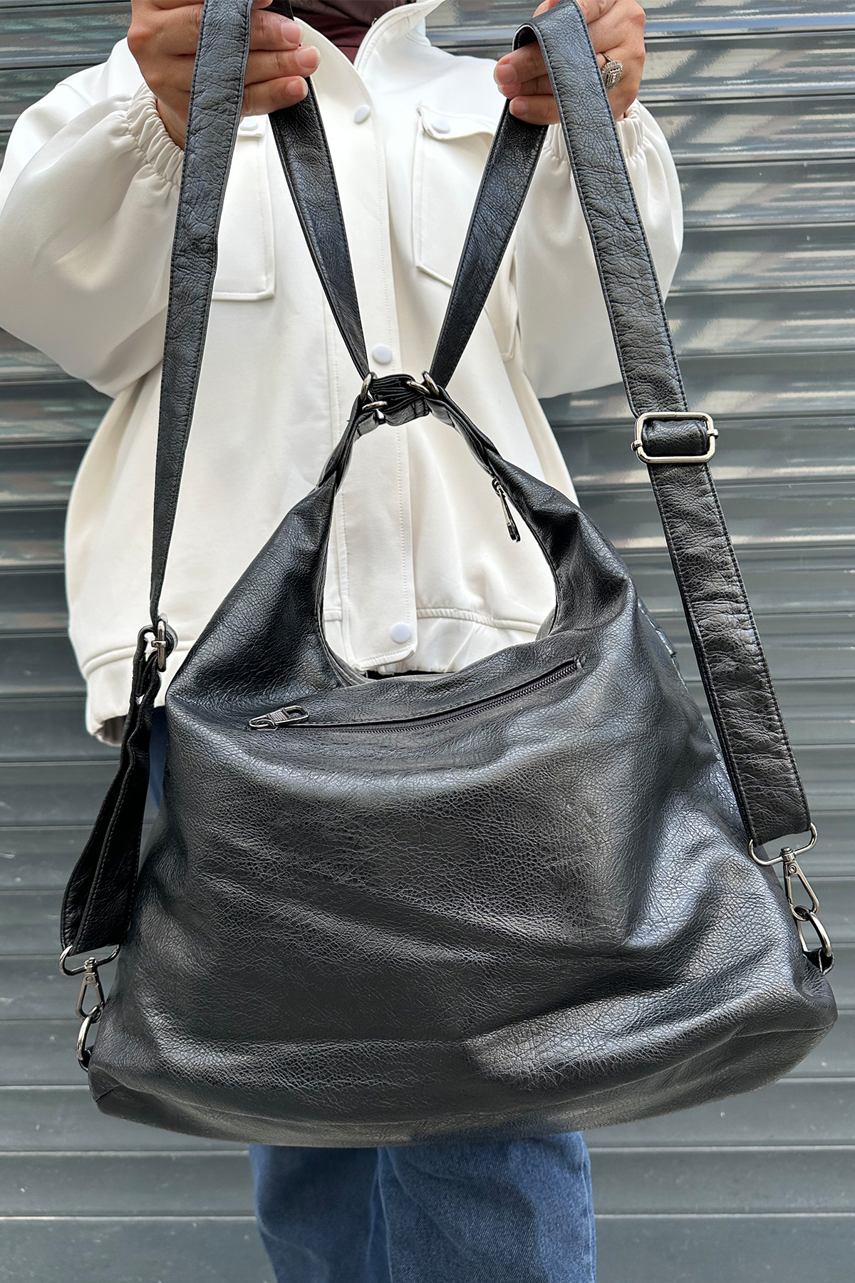 Orijinal Kadın Çok Bölmeli Yıkamalı Deri Şık Sırt Ve Omuz Çantası Orijinal Kadın Çok Bölmeli Yıkamalı Deri Şık Sırt Ve Omuz Çantası JPM10009 Standart
