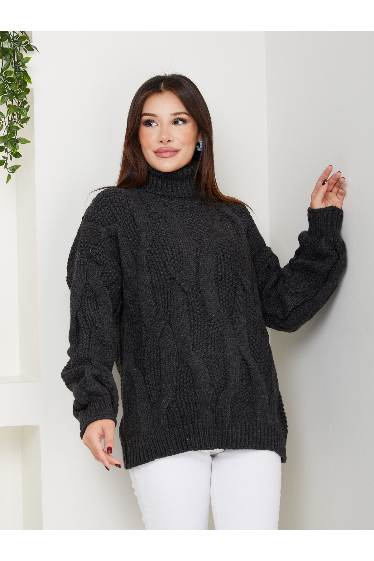 Balıkçı Yaka Saç Örgülü Triko Kazak RC8203 Balıkçı Yaka Saç Örgülü Triko Kazak RC8203 Standart