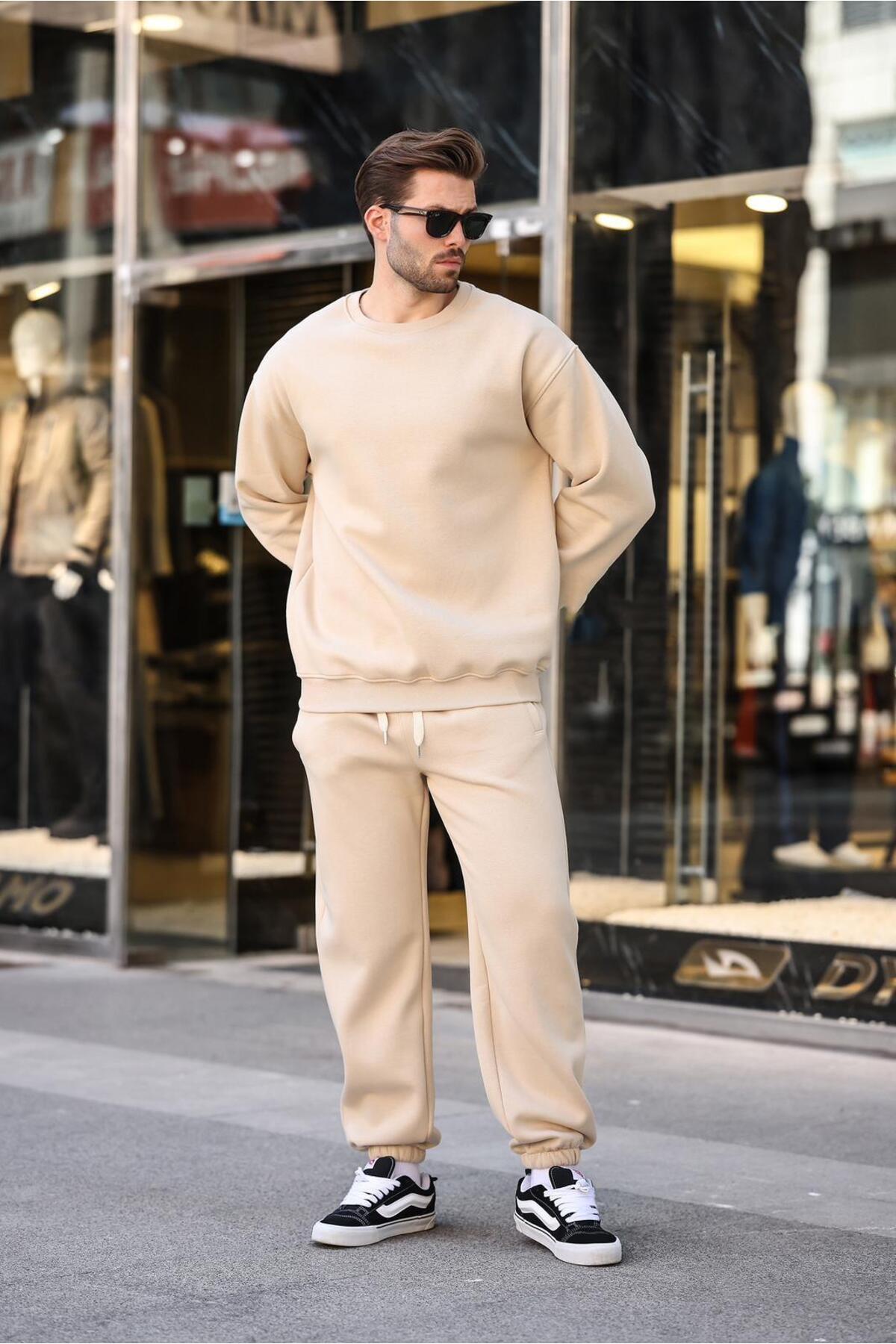 Bej Bisiklet Yaka Basic Eşofman Takımı E7329 Bej Bisiklet Yaka Basic Eşofman Takımı E7329 2XL