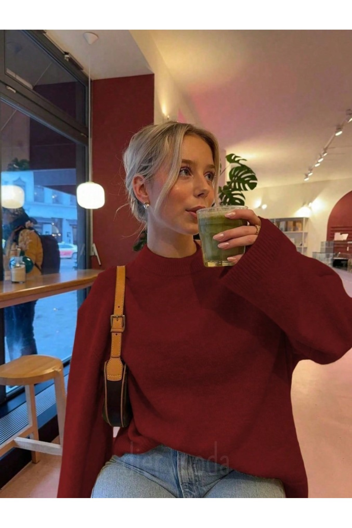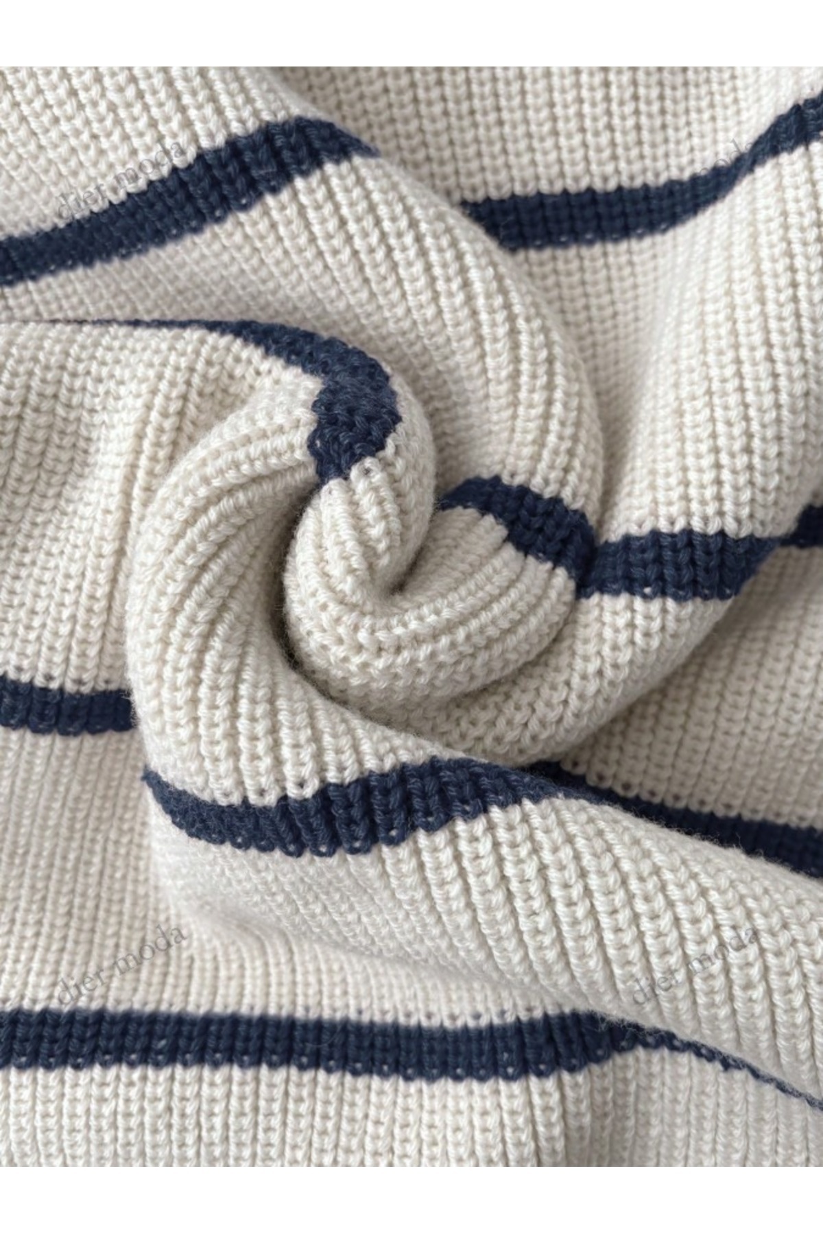 Ekru Lacivert Selanik Örgü Polo Yaka Oversize Triko Kazak, Kadın Kazak Ekru Lacivert Selanik Örgü Polo Yaka Oversize Triko Kazak, Kadın Kazak Fmoda101 L