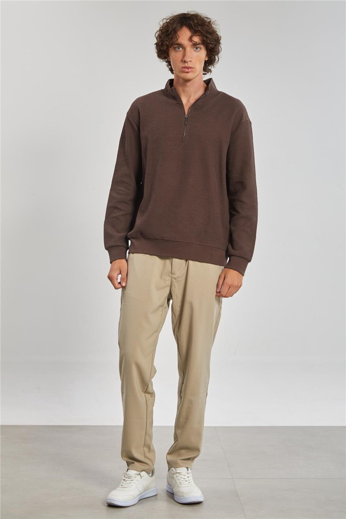 Dik Yaka Yarım Fermuarlı Erkek Sweat - Kahve Dik Yaka Yarım Fermuarlı Erkek Sweat - Kahve 791-25K118013 2XL