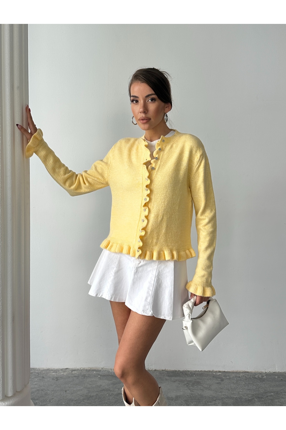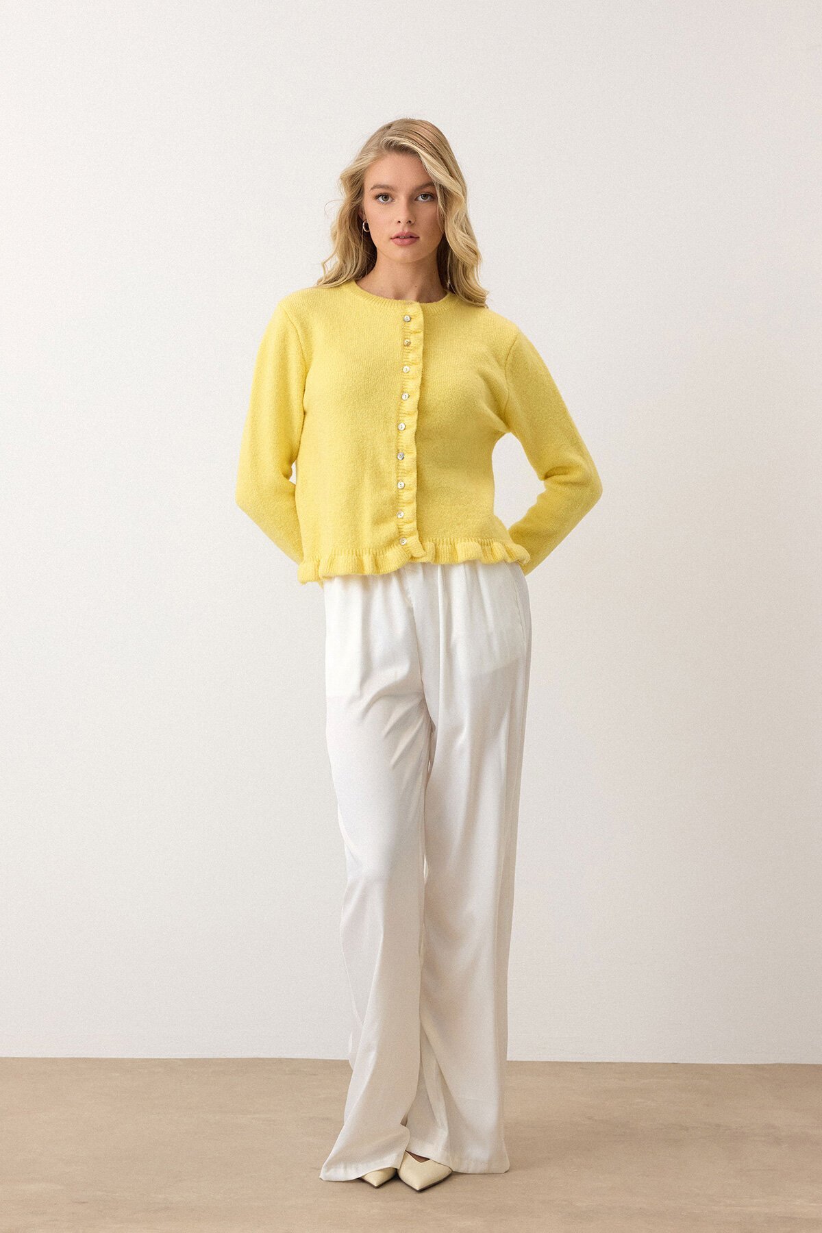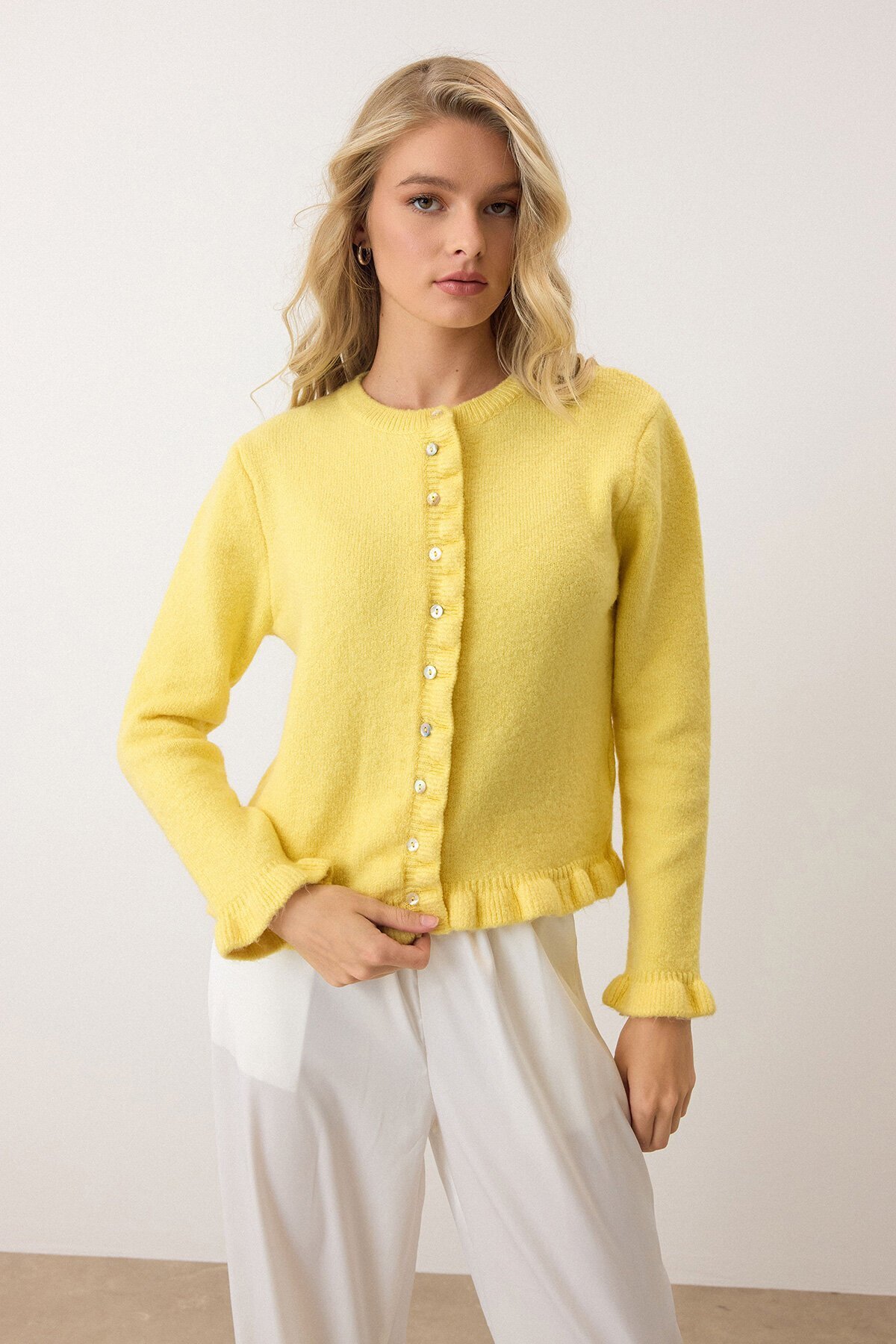 Kadın Sarı Eteği Ve Kolları Fırfırlı Düğme Kapamalı Bisiklet Yaka Triko Hırka Vs00938 Kadın Sarı Eteği Ve Kolları Fırfırlı Düğme Kapamalı Bisiklet Yaka Triko Hırka Vs00938 VS00938 تک سایز