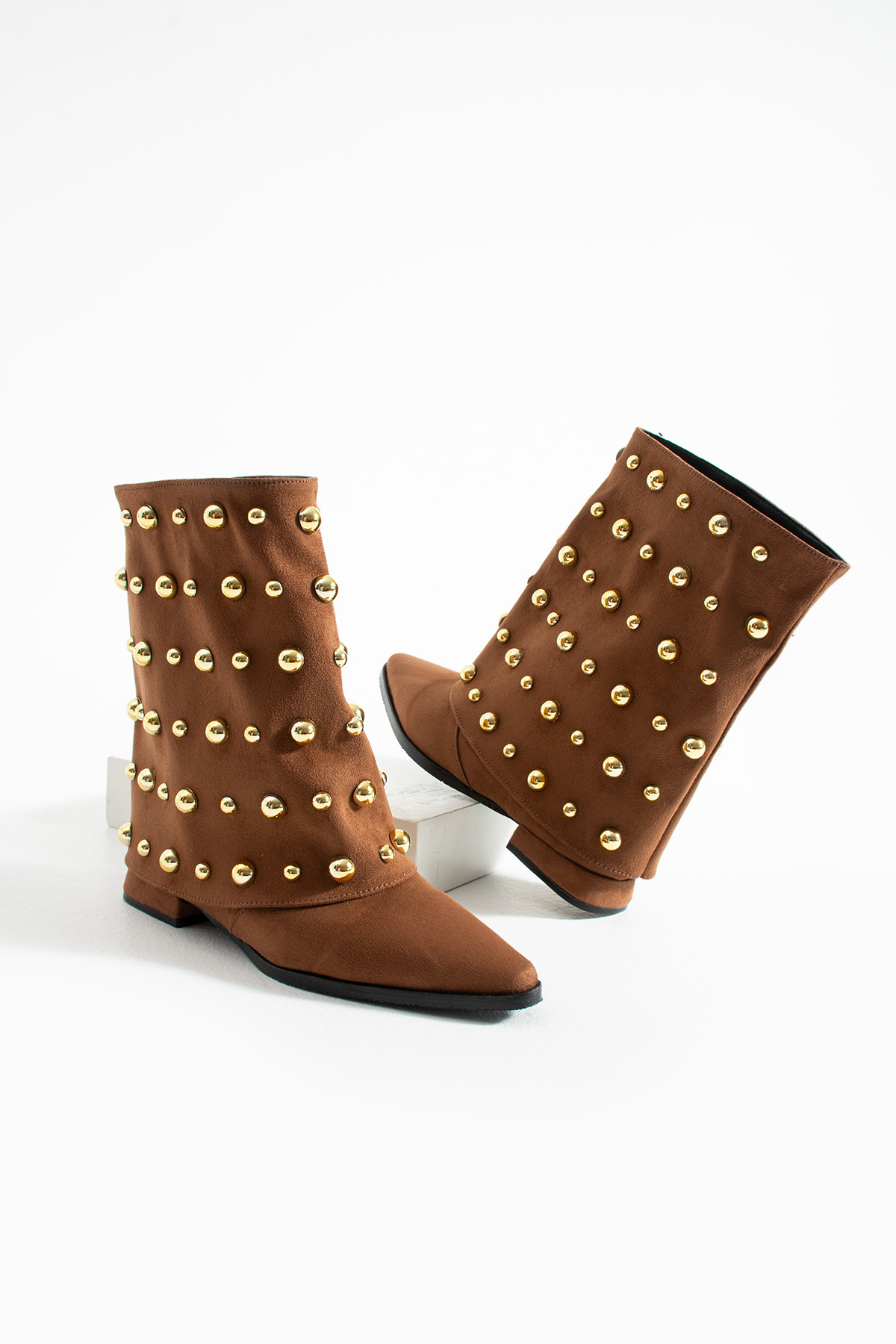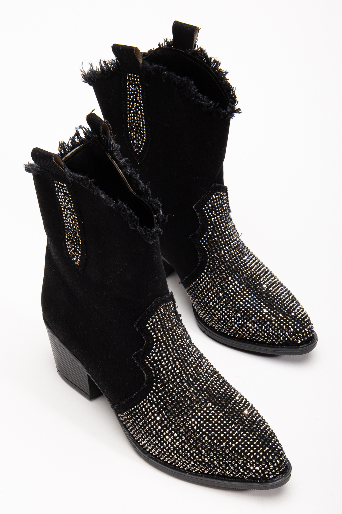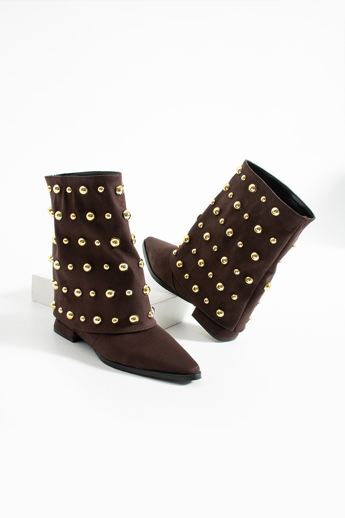 Kadın Siyah Altın Zımbalı Sivri Burun Düz Topuk Süet Bot Ginez Kadın Siyah Altın Zımbalı Sivri Burun Düz Topuk Süet Bot Ginez DPSRHT161 40