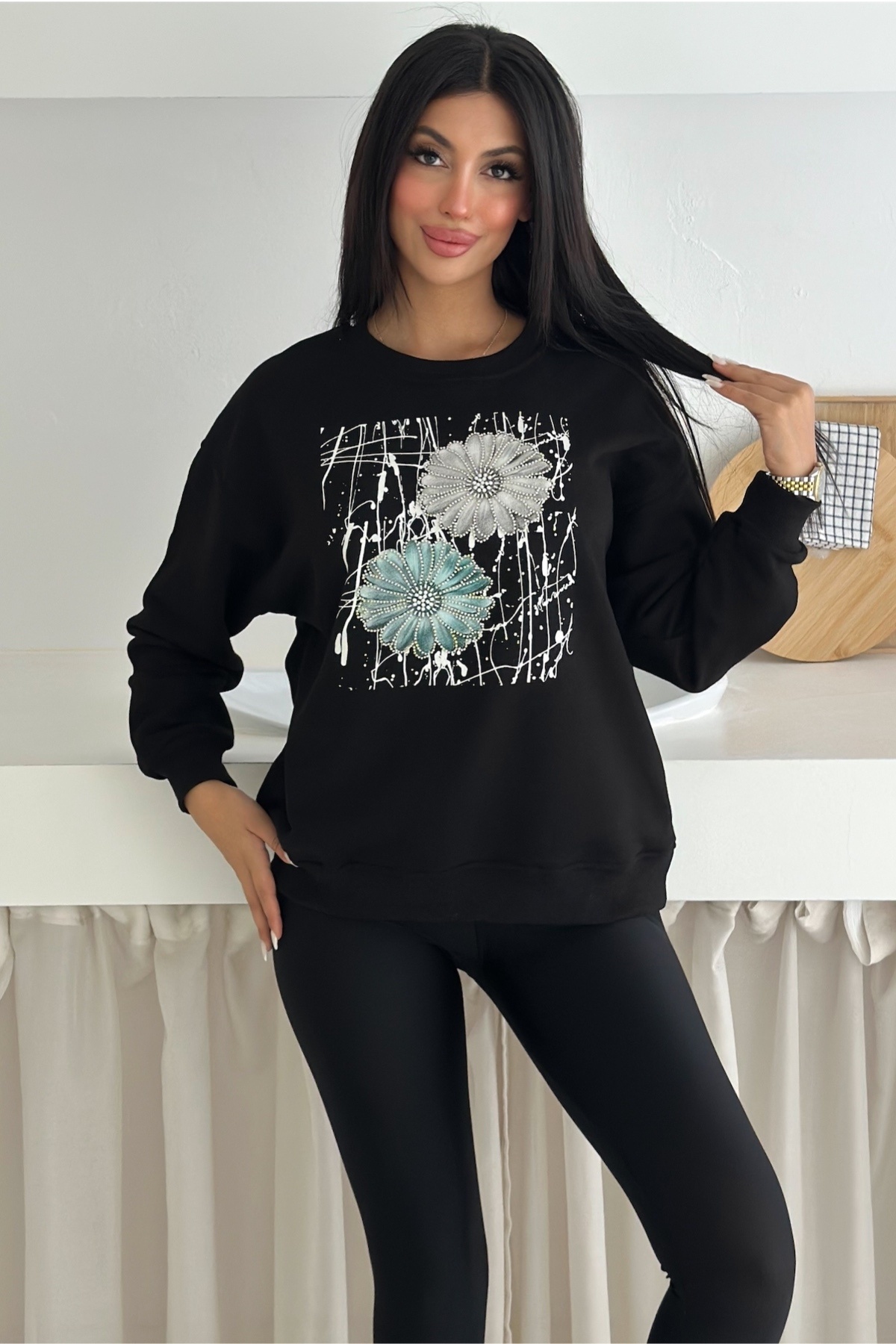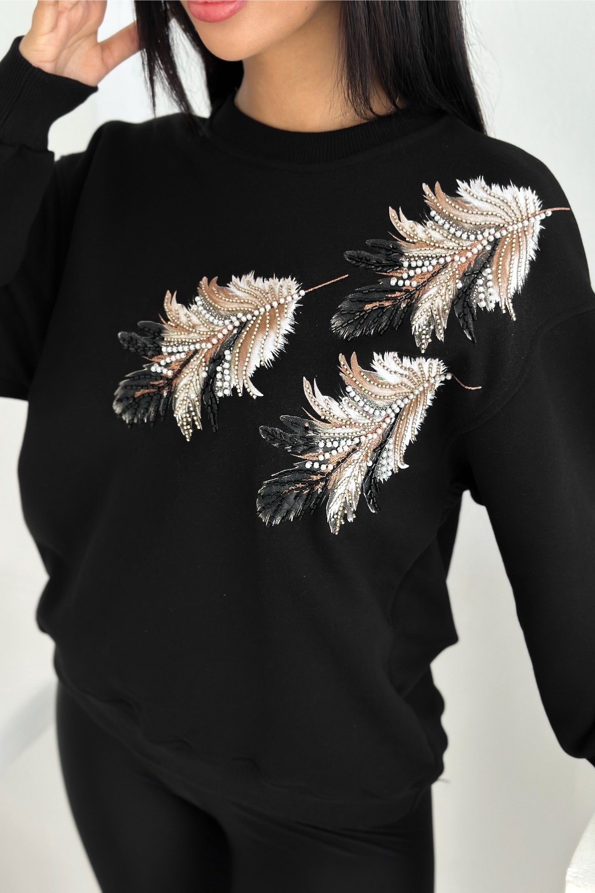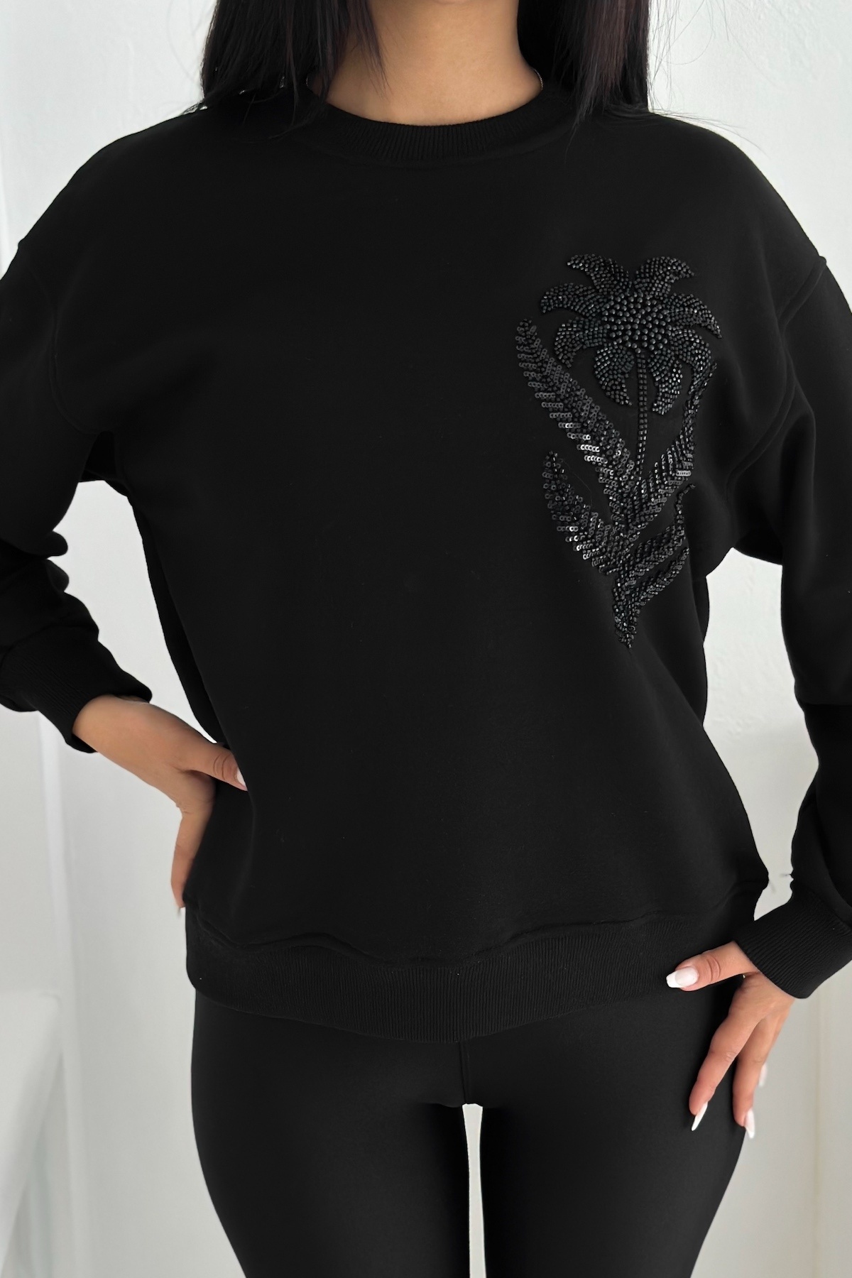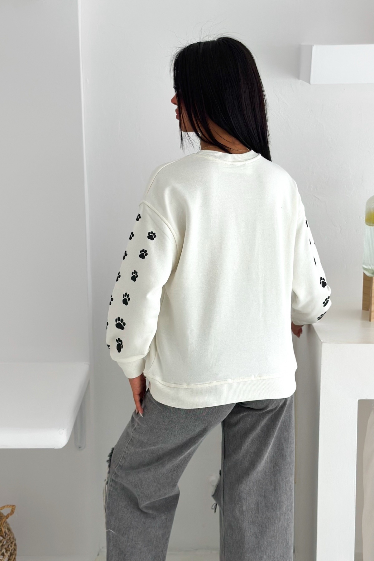 Beyaz Kedi Desen Boncuk İşlemeli %100 Pamuk Sweatshirt Beyaz Kedi Desen Boncuk İşlemeli %100 Pamuk Sweatshirt svt8 XL