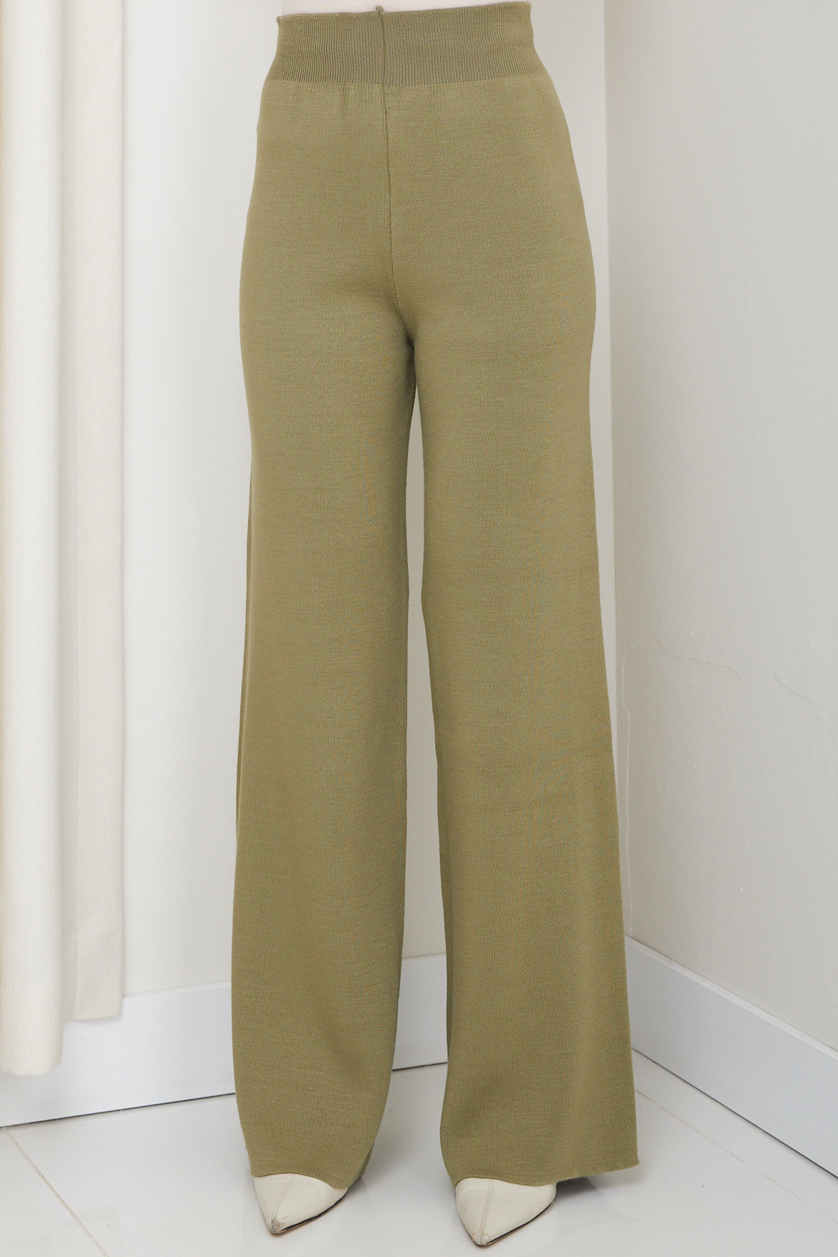 Kadın kışlık rahat kalıp bol paça comfort beli lastikli triko pantolon Kadın kışlık rahat kalıp bol paça comfort beli lastikli triko pantolon 14PL15 Standart