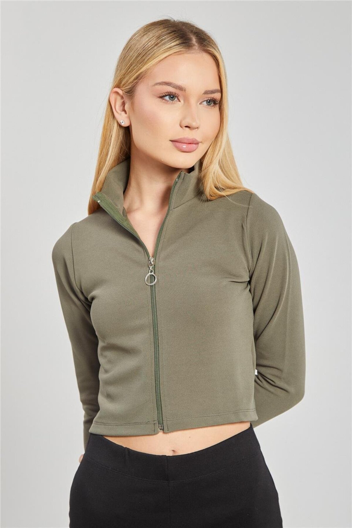 Dik Yaka Fermuarlı Kadın Body - Füme Dik Yaka Fermuarlı Kadın Body - Füme 870-25NS003 XL