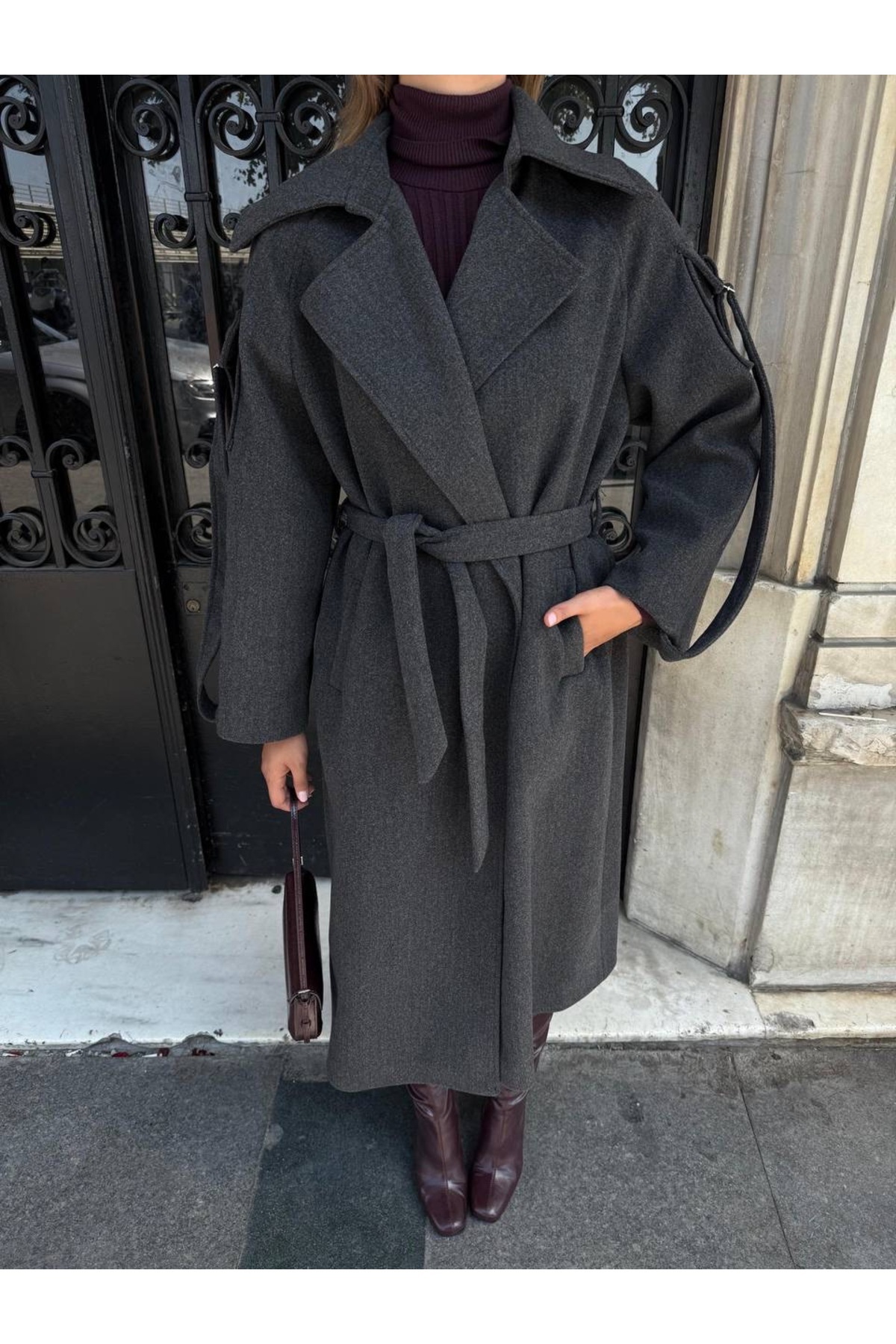 MÜRDÜM Uzun Apoletli Kaşe Kaban MÜRDÜM Uzun Apoletli Kaşe Kaban HFK500001 L