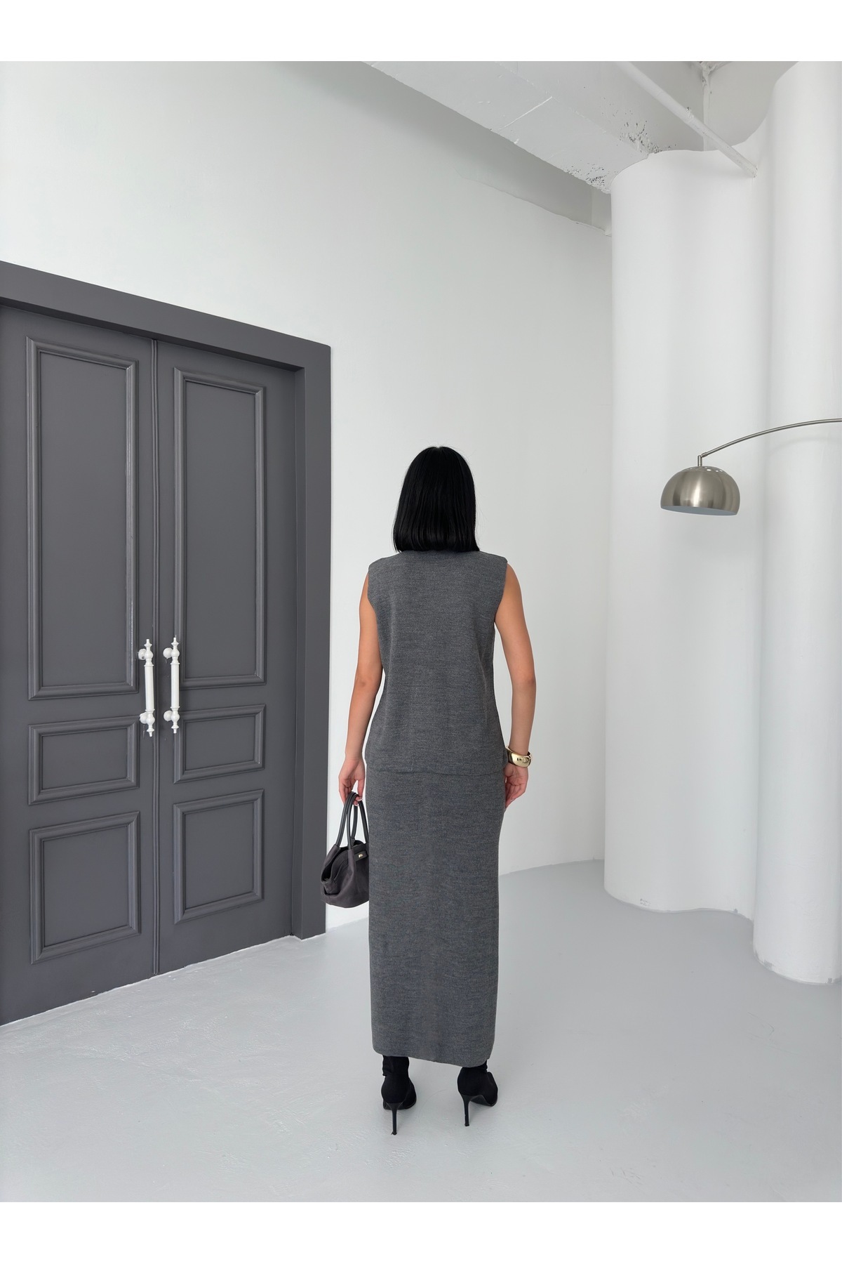 Kadın Antrasit Düğme Detaylı Yelek Uzun Etek Alt Üst Triko Takım Kadın Antrasit Düğme Detaylı Yelek Uzun Etek Alt Üst Triko Takım BJN638 38-40