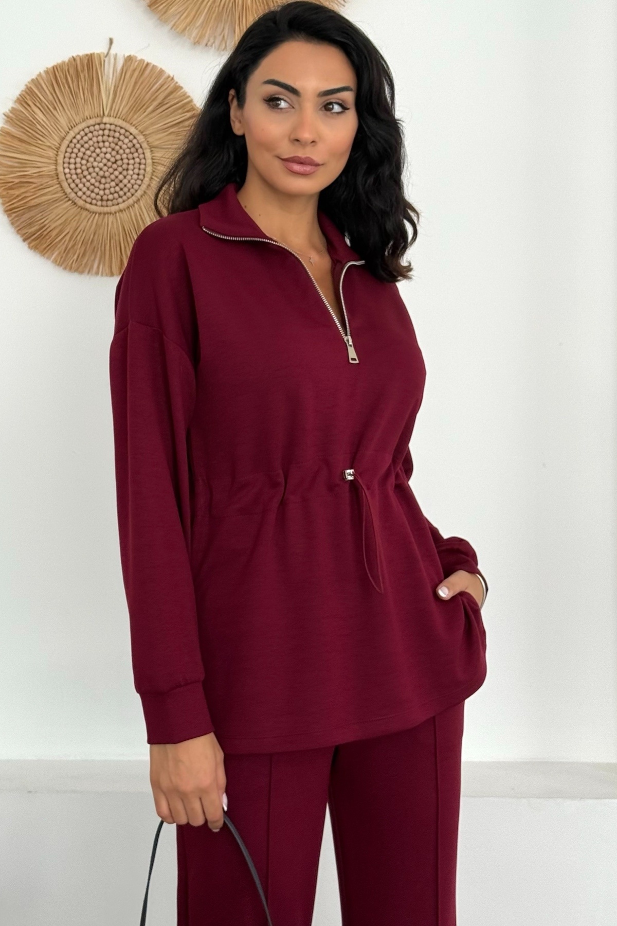 Kadın Yarım Fermuarlı Yakalı Uzun Kollu Beli Ayarlanabilir Tunik Geniş Paça Modal Takım Kadın Yarım Fermuarlı Yakalı Uzun Kollu Beli Ayarlanabilir Tunik Geniş Paça Modal Takım ded342 XL