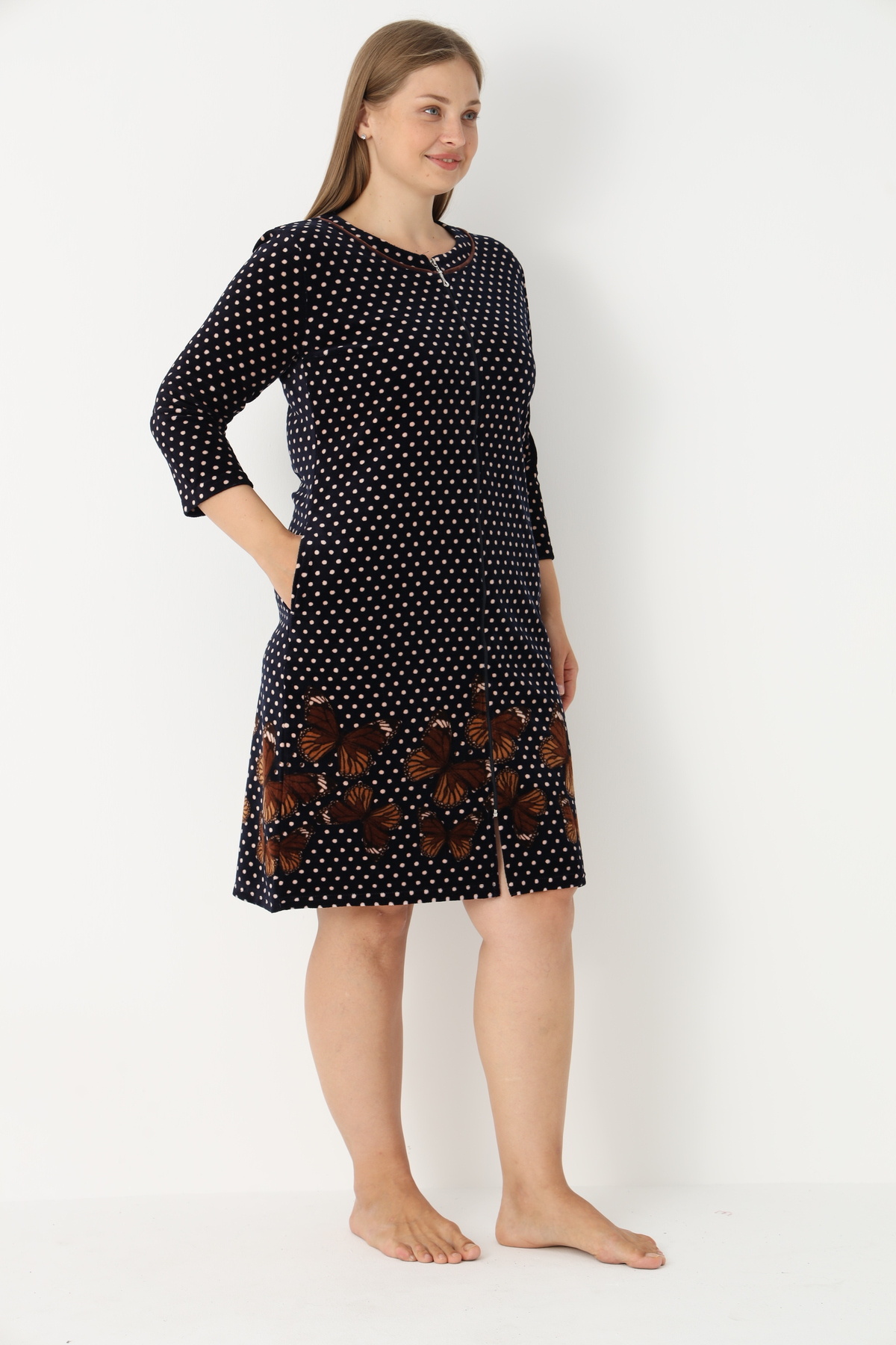Kadın Büyük Beden Pamuklu Kadife Fermuarlı Elbise 3528 / Kahve-Bej Kadın Büyük Beden Pamuklu Kadife Fermuarlı Elbise 3528 / Kahve-Bej 3XL