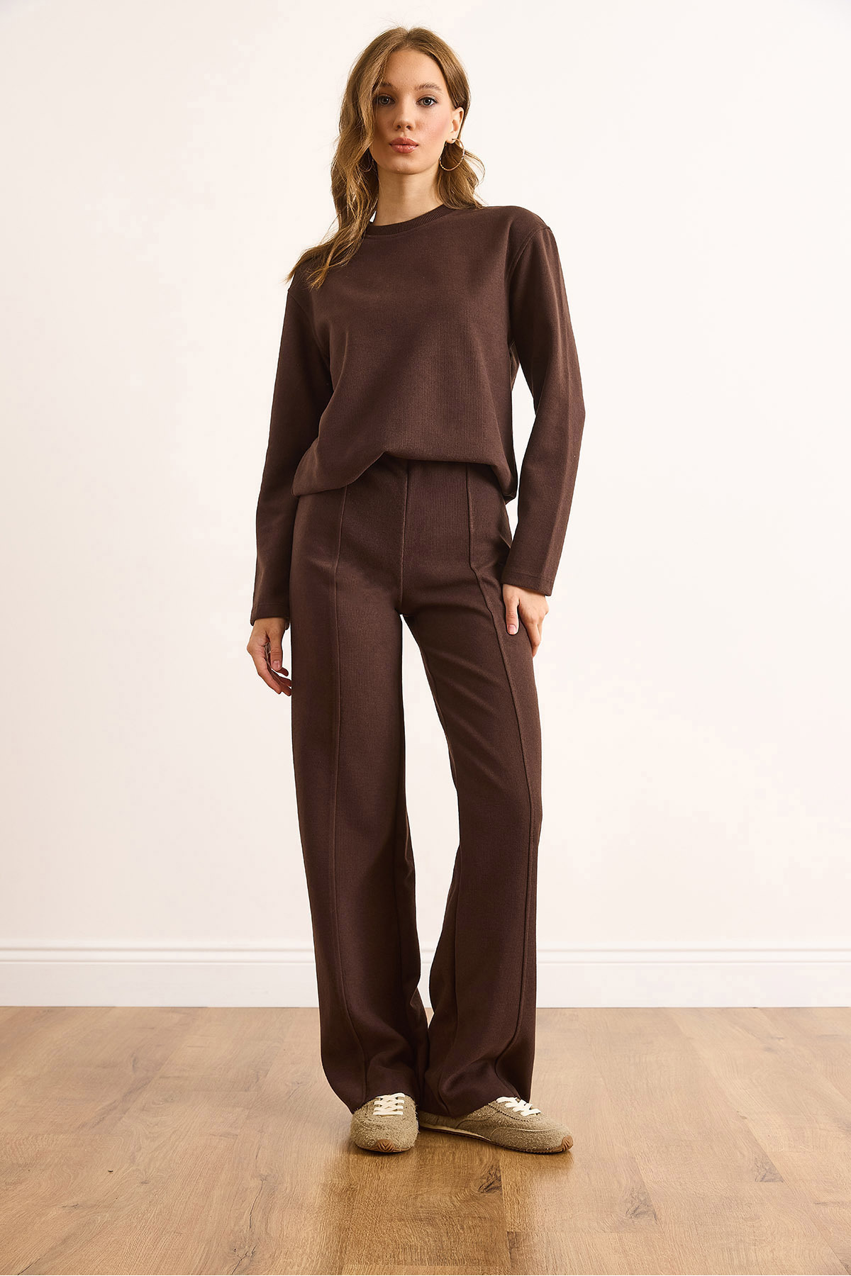 Kadın Kahverengi Selanik Üst Kazak Alt Dikiş Detaylı Pantolon Takım TKM-19000427 Kadın Kahverengi Selanik Üst Kazak Alt Dikiş Detaylı Pantolon Takım TKM-19000427 L