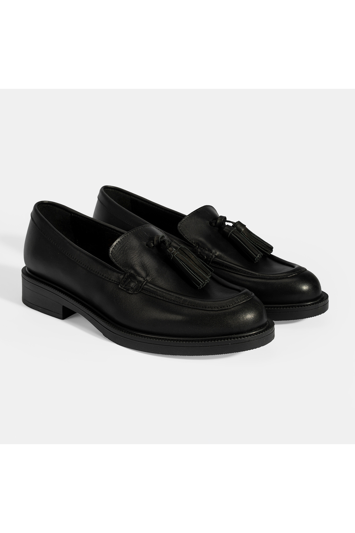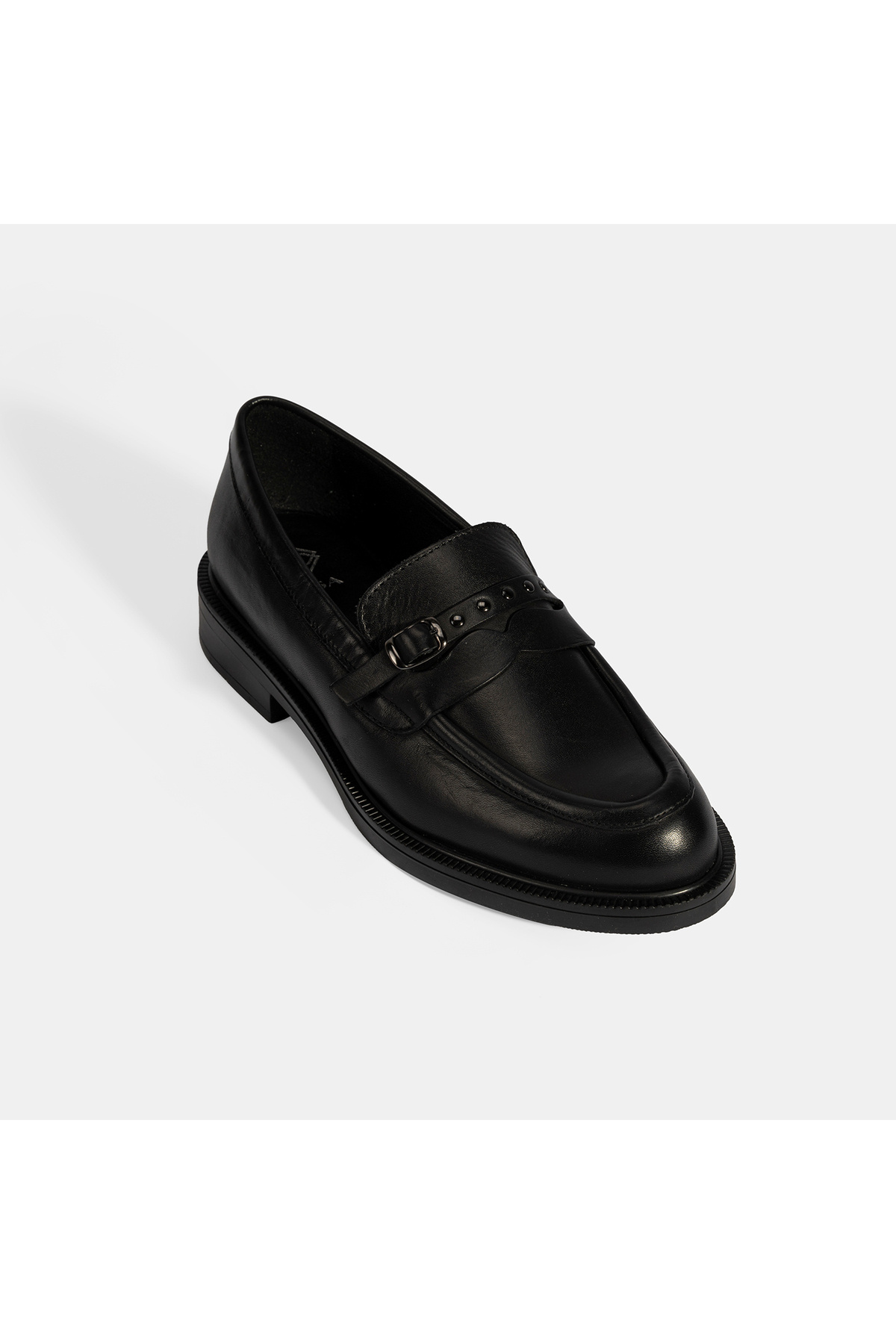 Kadın Siyah Metal Toka Detaylı Deri Loafer Kadın Siyah Metal Toka Detaylı Deri Loafer 309840 40