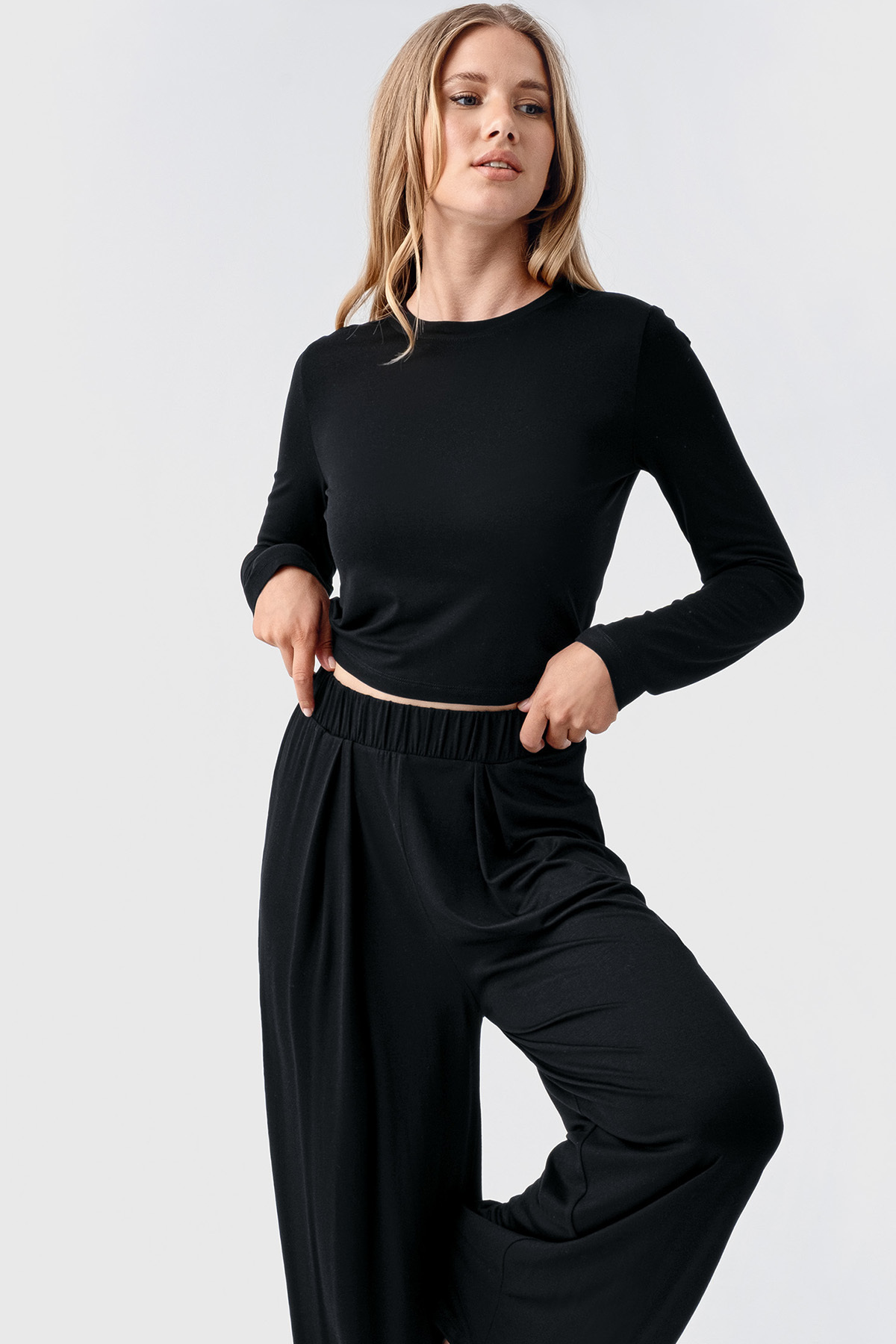Uzun Kollu Crop Bol Paça Esnek Viskoz Pijama Takım Uzun Kollu Crop Bol Paça Esnek Viskoz Pijama Takım 18210 XL