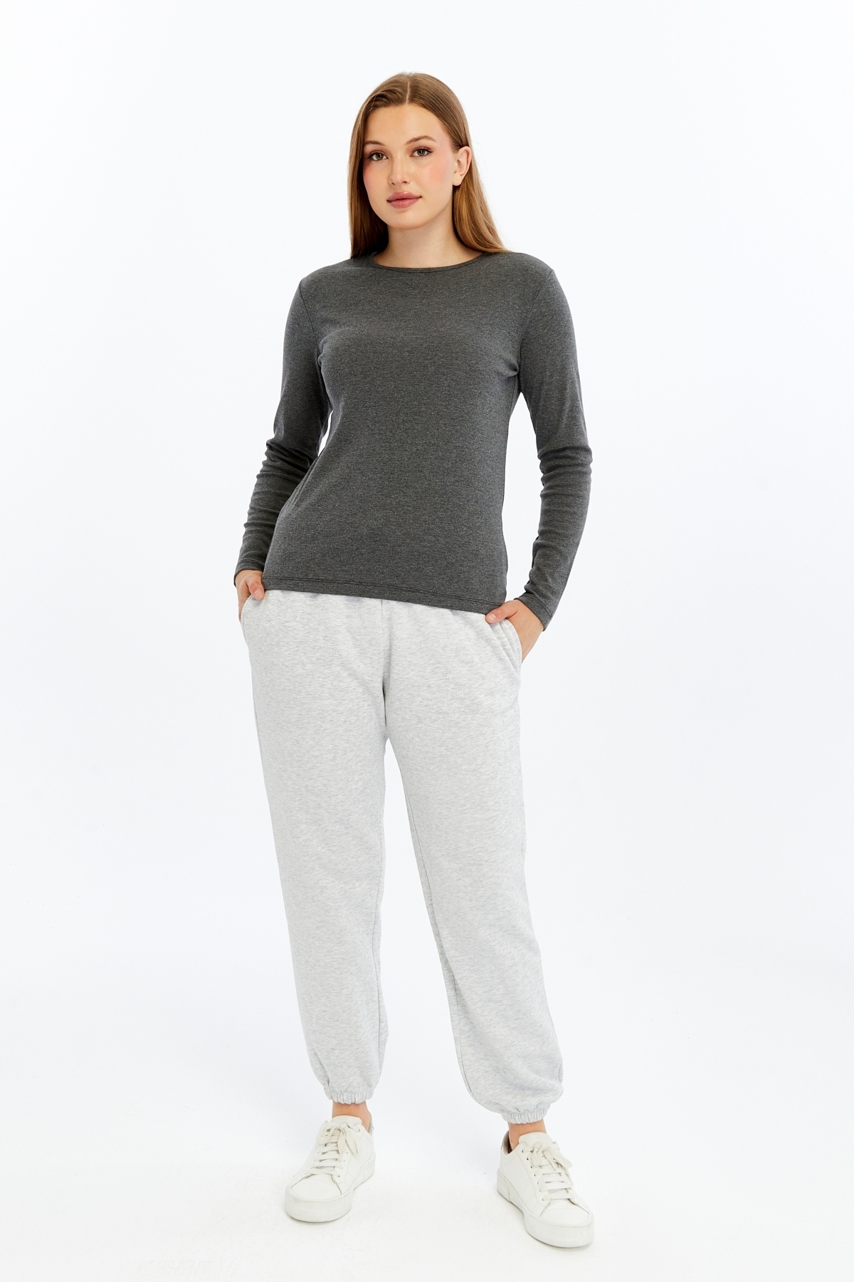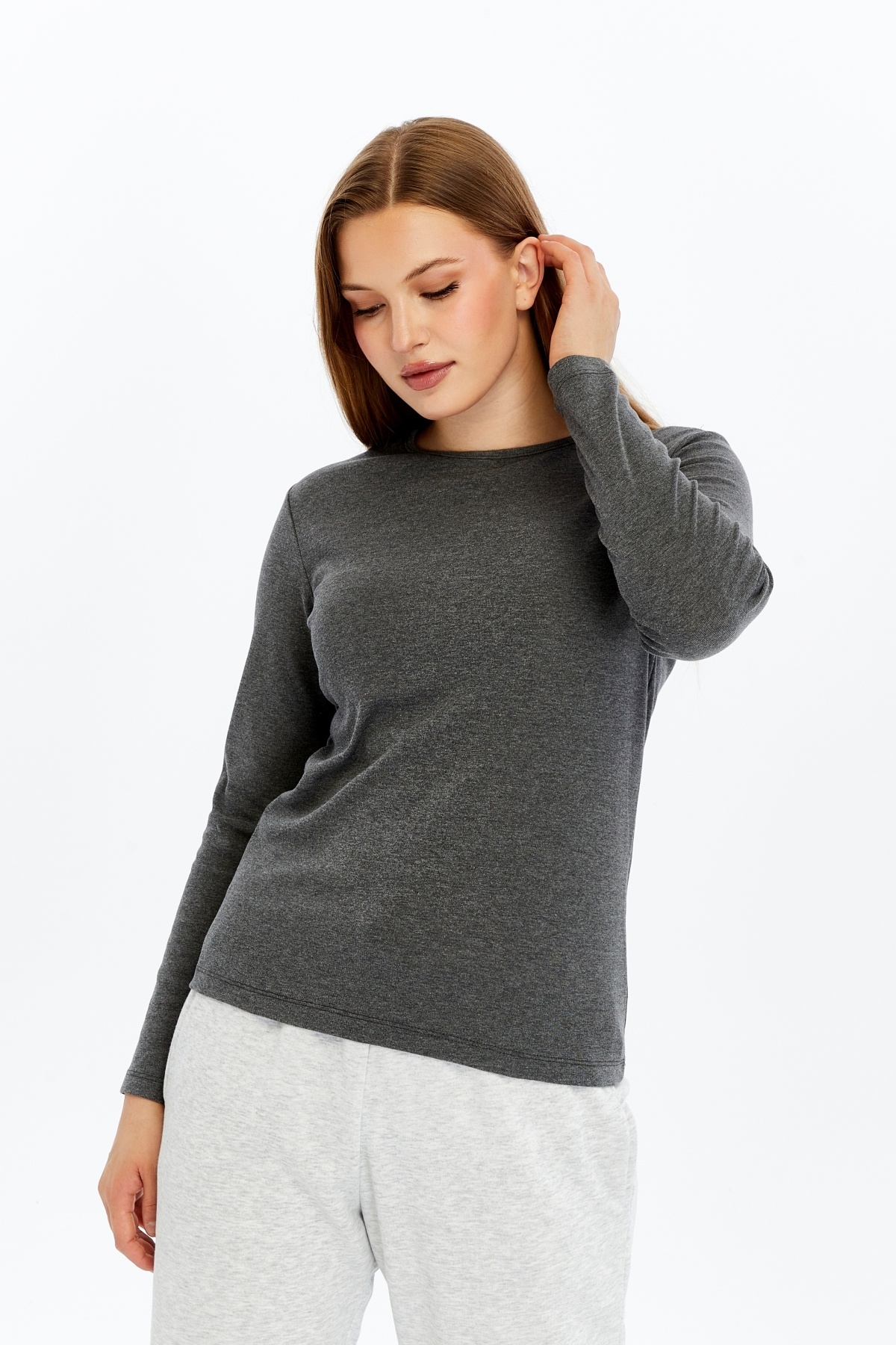 Kadın Bisiklet Yaka Uzun Kollu Regular Fit Basic Tişört Antrasit Kadın Bisiklet Yaka Uzun Kollu Regular Fit Basic Tişört Antrasit FOKUS 2XL