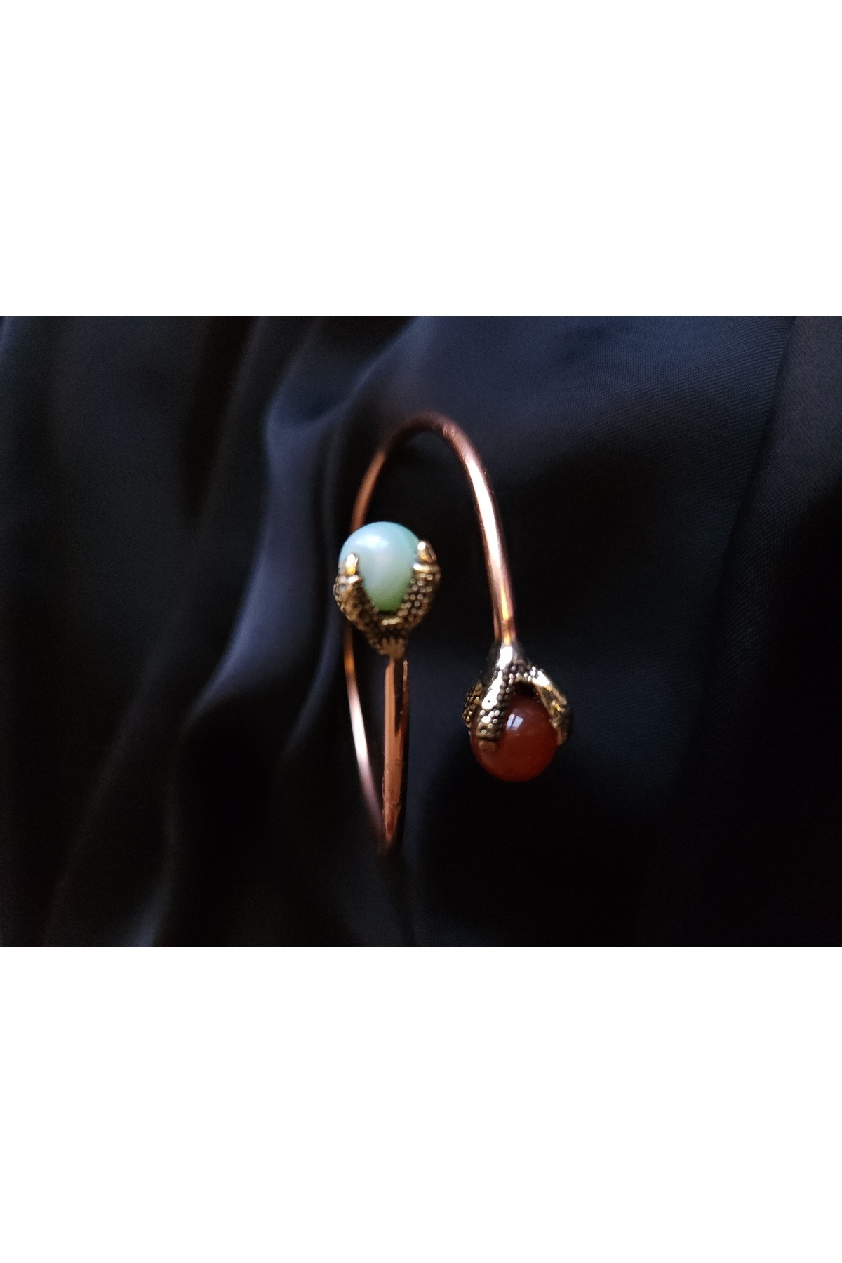 Doğal Akik ve Taşlı Bakır Bilezik Doğal Akik ve Taşlı Bakır Bilezik 05092025sedef Ayarlanabilir