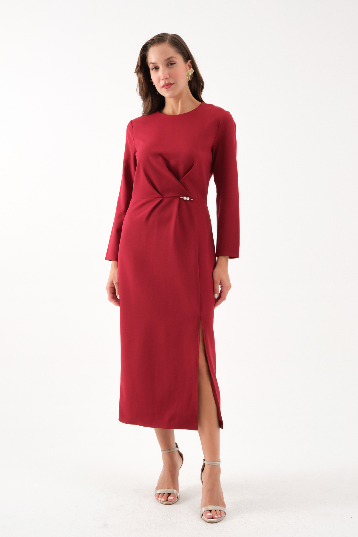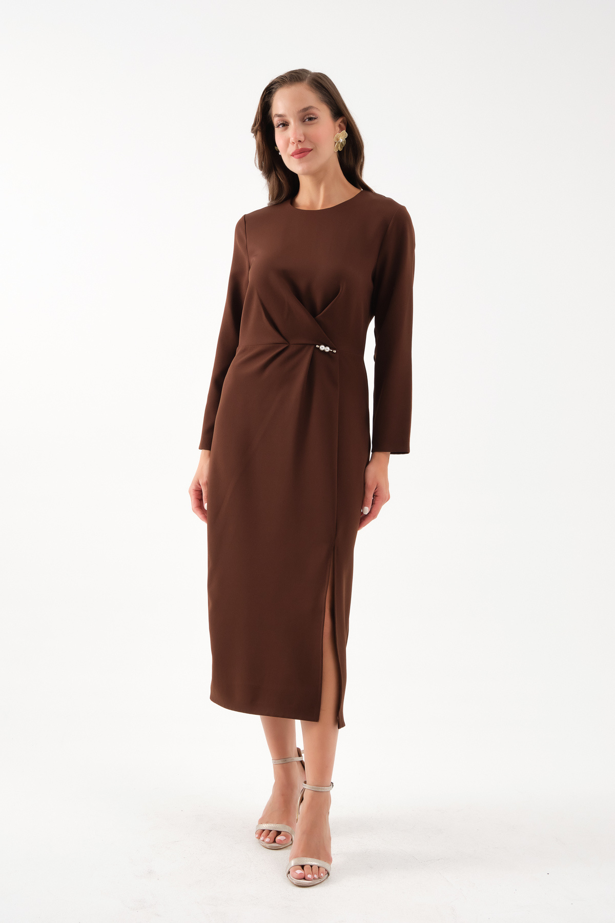 Kadın Kahverengi İnci Detay Midi Davet Elbisesi Kadın Kahverengi İnci Detay Midi Davet Elbisesi 25K012528 48