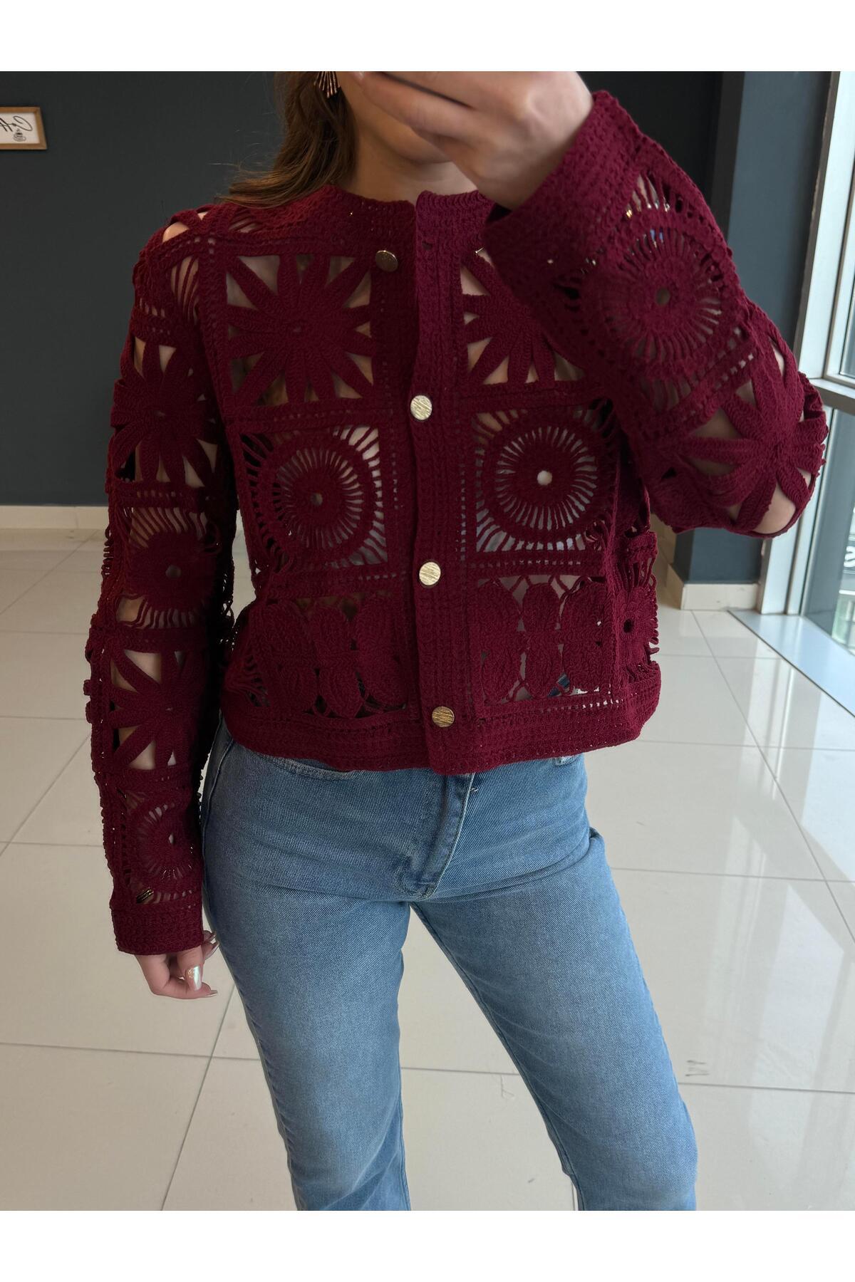 Tasarim Gol Düğmeli Dantel Ceket Bordo Tasarim Gol Düğmeli Dantel Ceket Bordo TXE9AE19352337 Standart