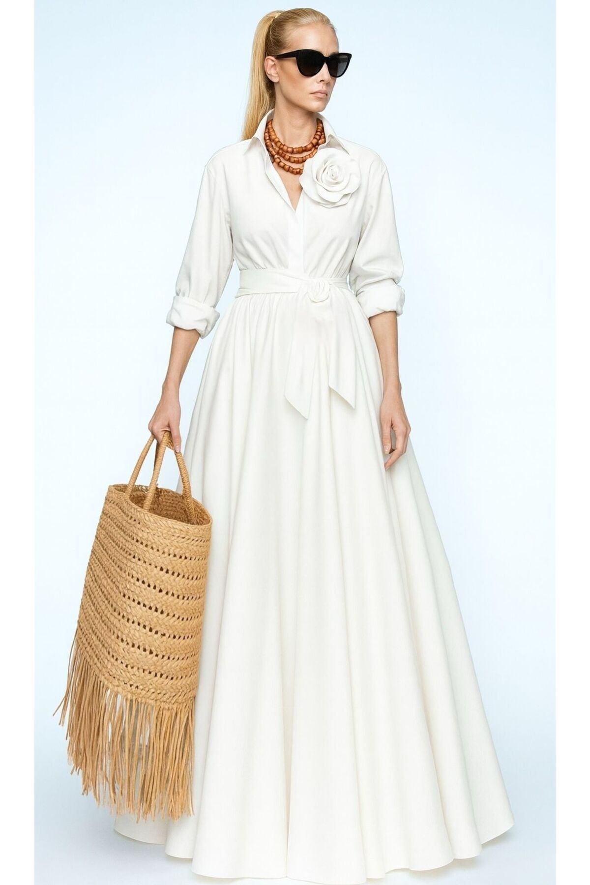 Beyaz Fiyonklu Poplin Uzun Elbise Beyaz Fiyonklu Poplin Uzun Elbise RMN23-79 L
