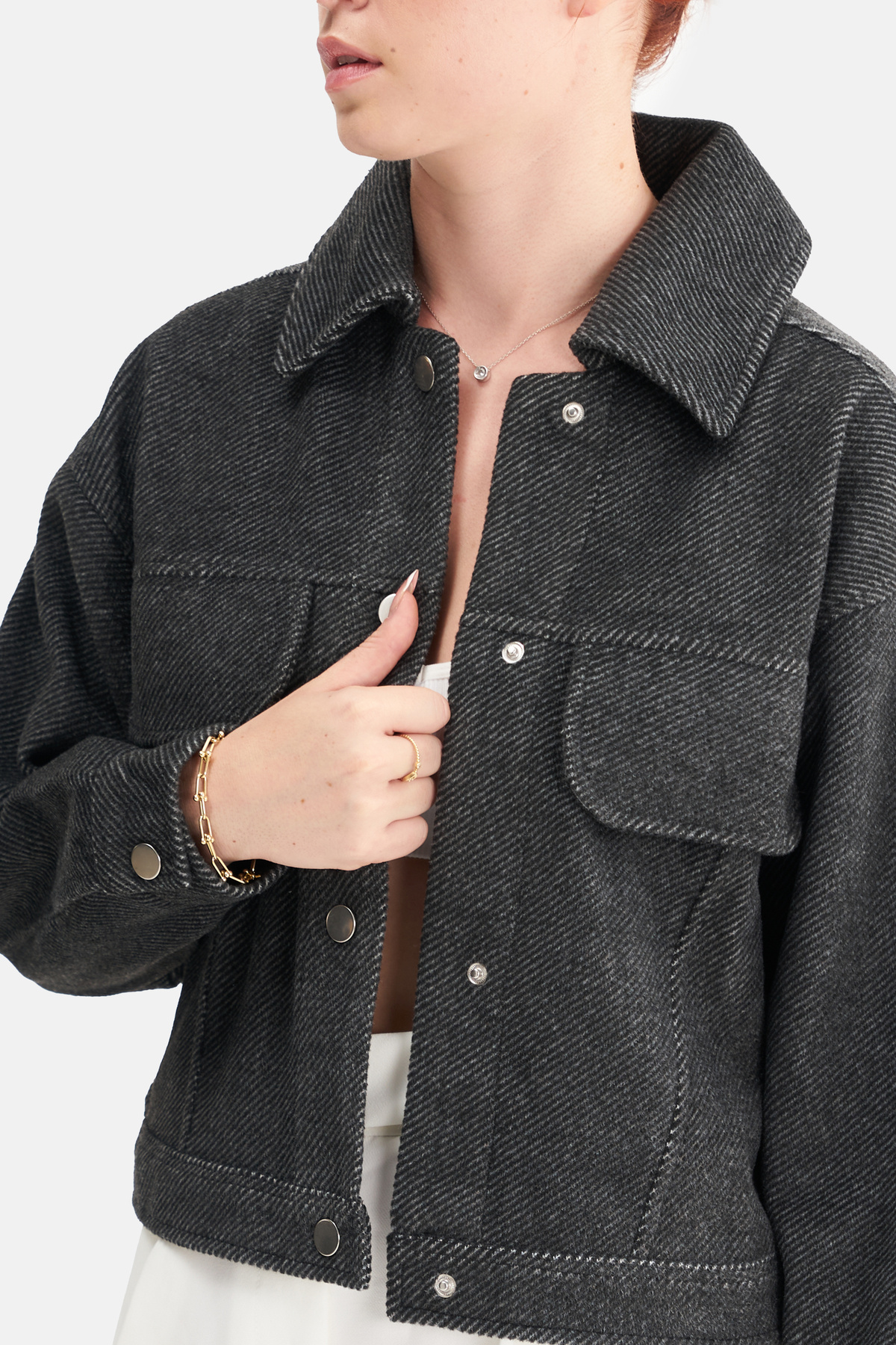 Kadın Kaşe Kumaş Çıtcıtlı Crop Mont Çeket Kadın Kaşe Kumaş Çıtcıtlı Crop Mont Çeket 254360 L