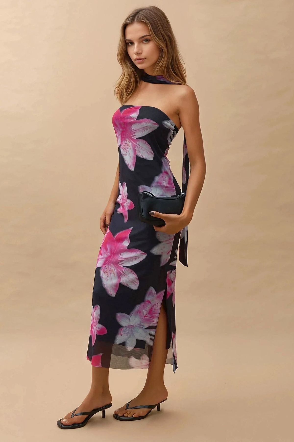 Desenli Askılı Bodycon Maxi Elbise Desenli Askılı Bodycon Maxi Elbise M4QXSESU XXS