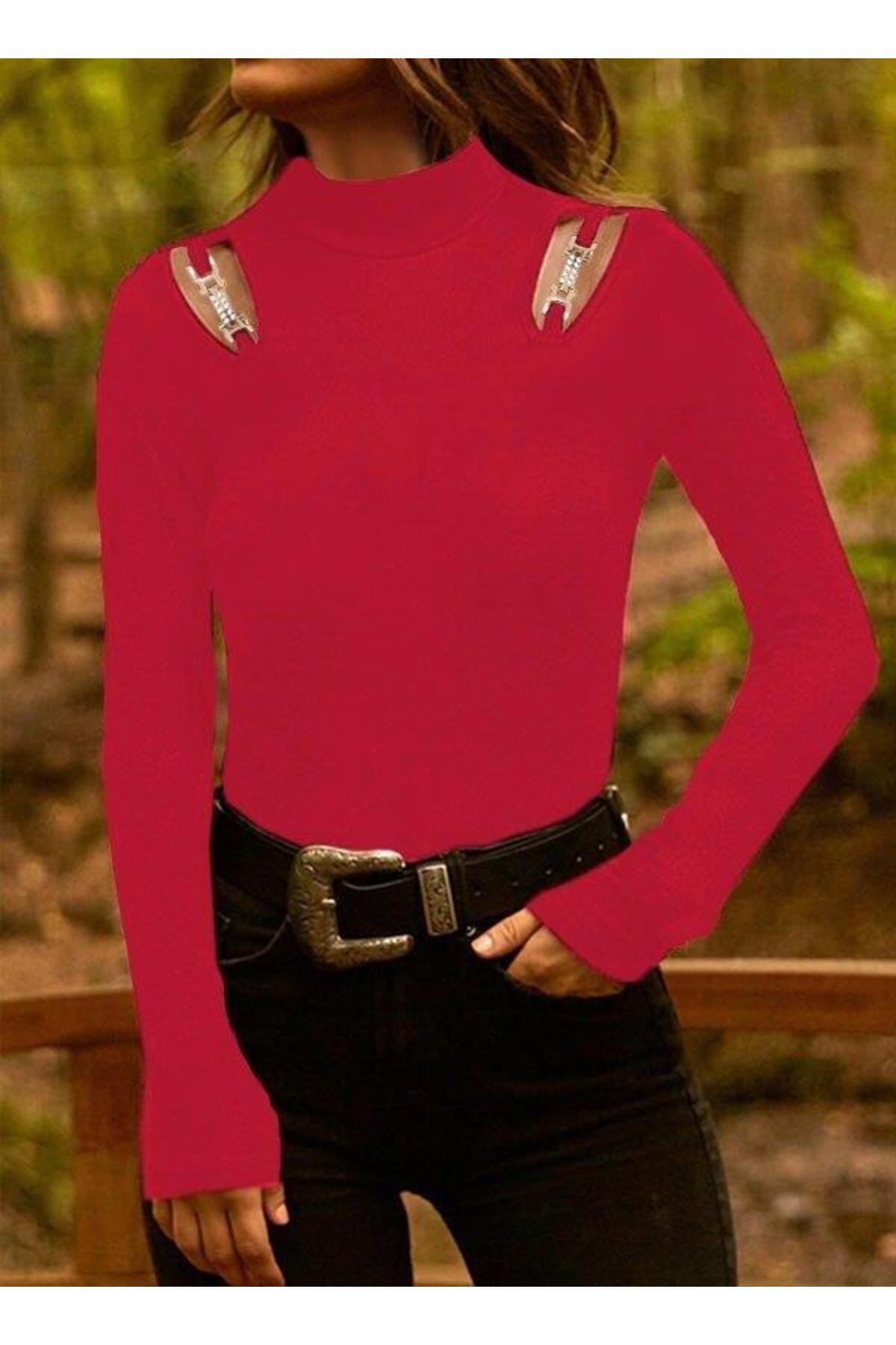 Ekru Kiraz İşlemeli Mevsimlik Triko Bluz Ekru Kiraz İşlemeli Mevsimlik Triko Bluz BNPRT1050 XL