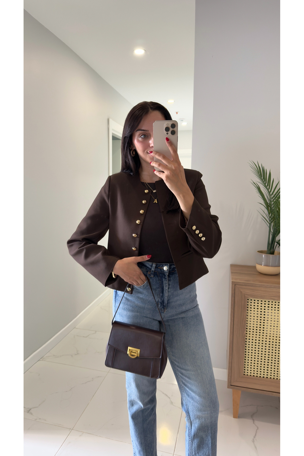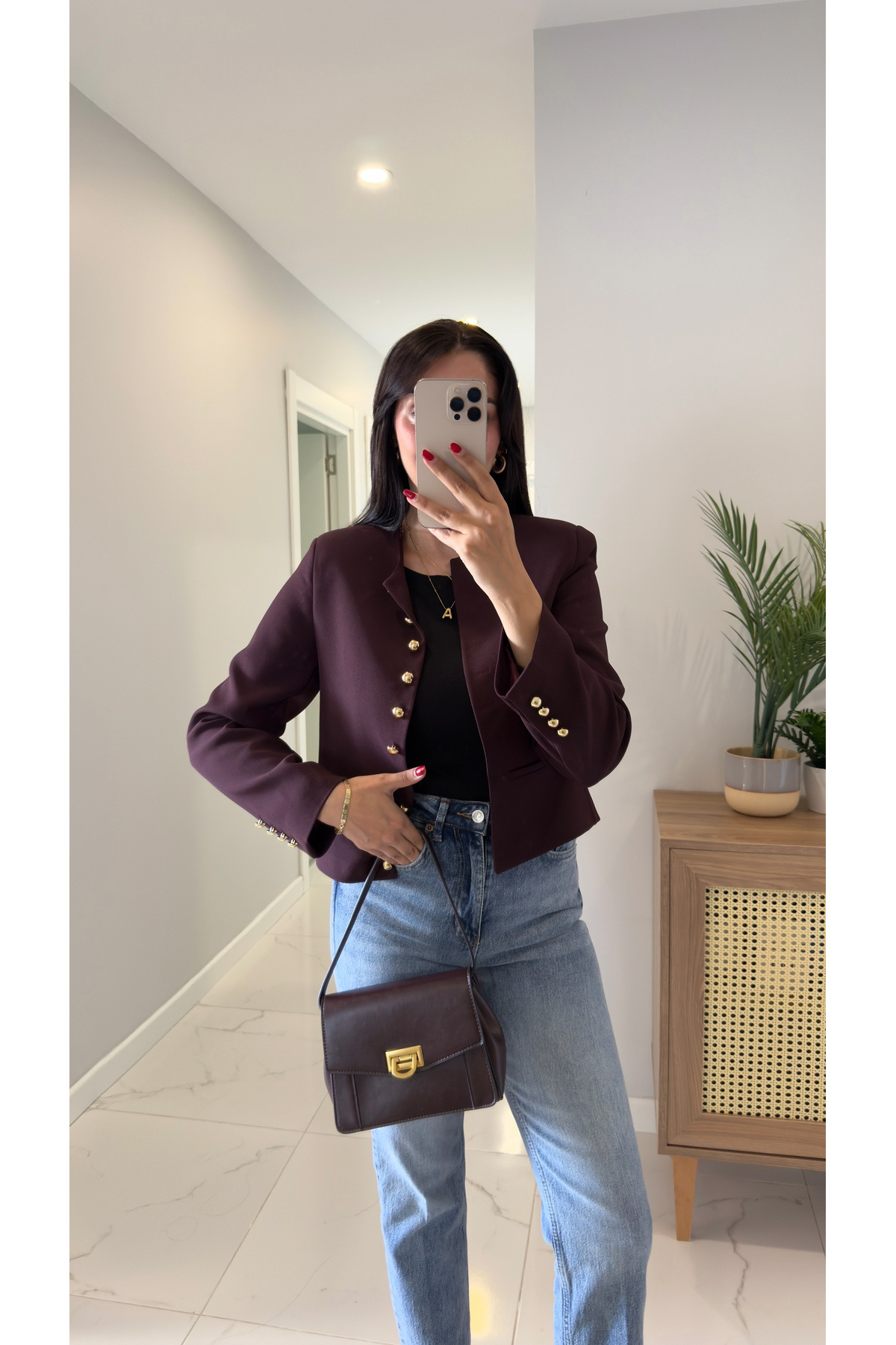 Gugy Taş Gold Düğme Detaylı Kısa Kol Ceket Gugy Taş Gold Düğme Detaylı Kısa Kol Ceket CKT136 L