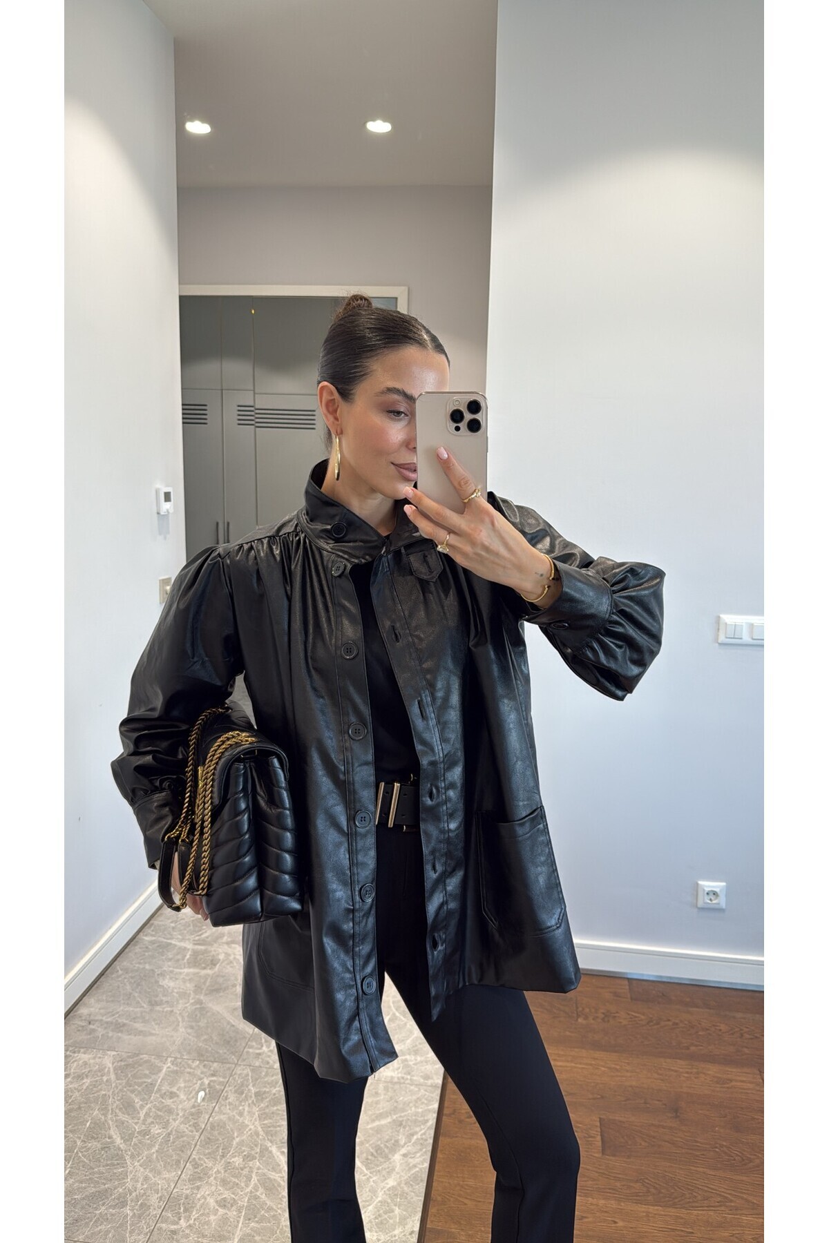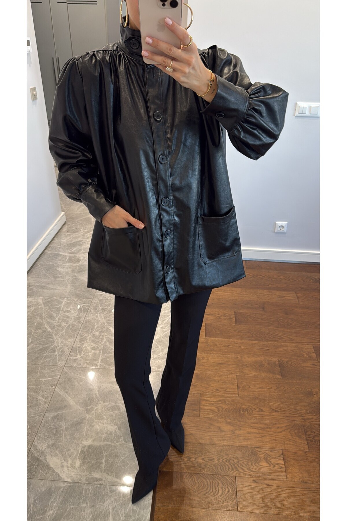 DERİ DÜĞME DETAYLI CEKET DERİ DÜĞME DETAYLI CEKET 6IOSK079 Standart