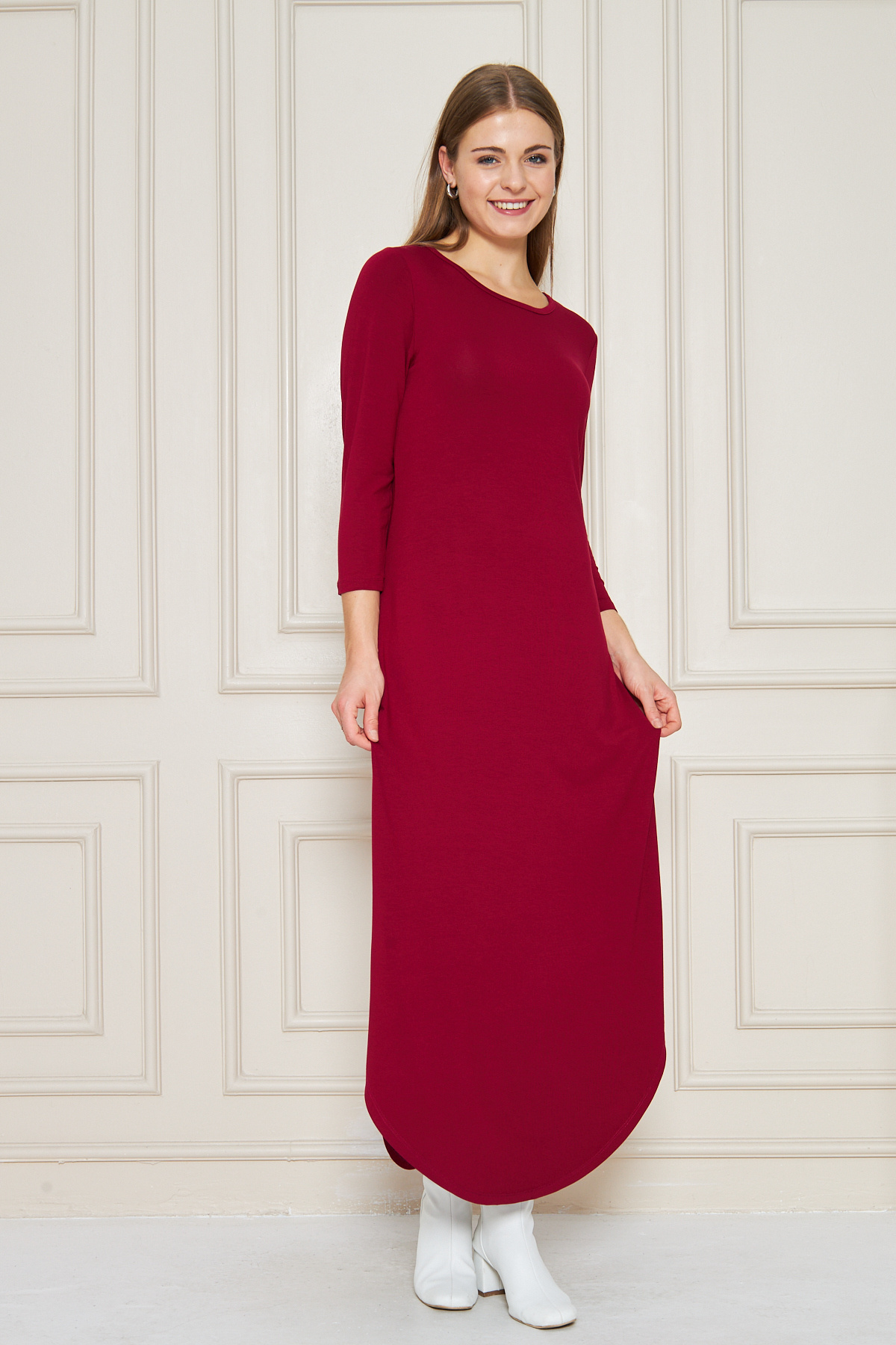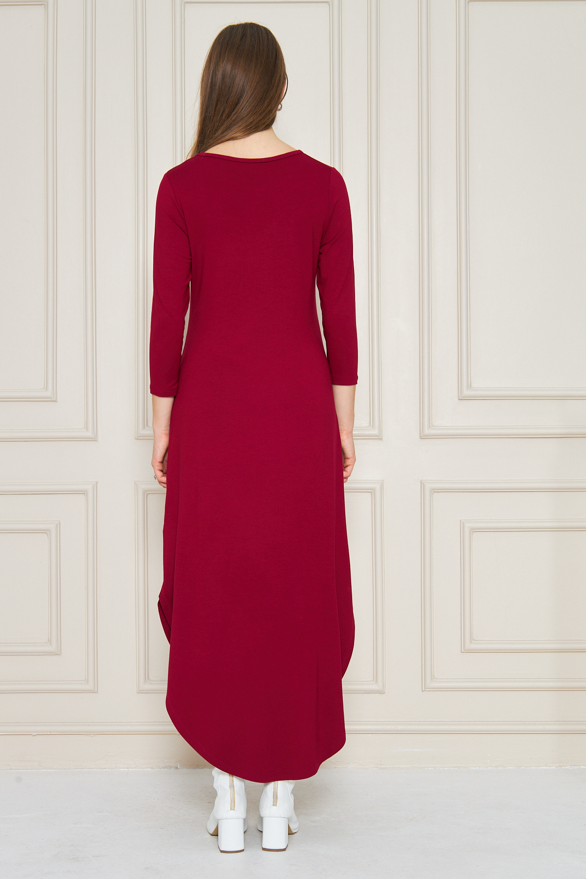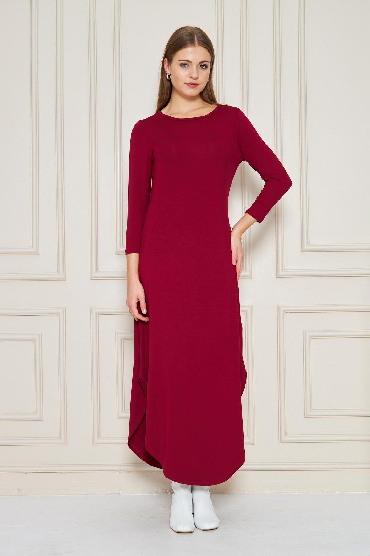 Kadın Uzun Kollu Etegi Oval Yırtmajlı Midi Boy Elbise Kadın Uzun Kollu Etegi Oval Yırtmajlı Midi Boy Elbise ESP-E00239 2XL