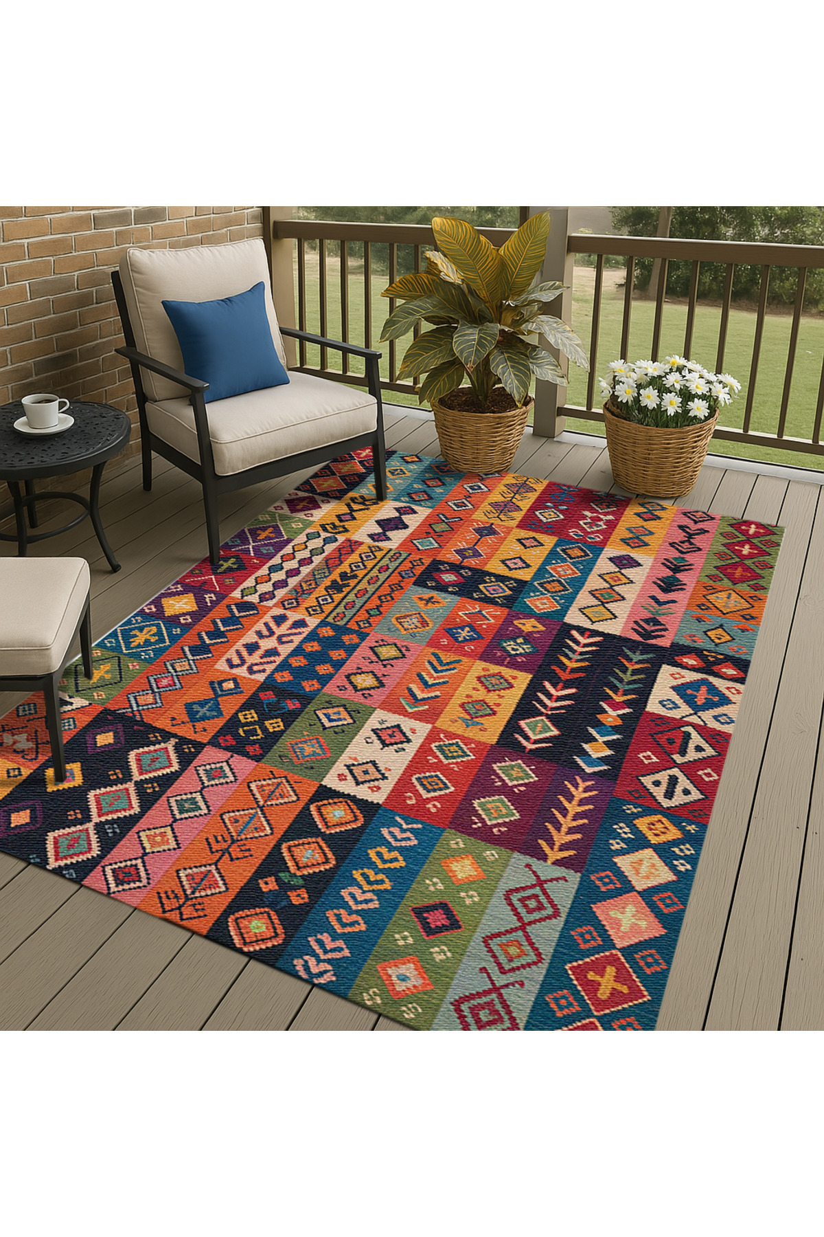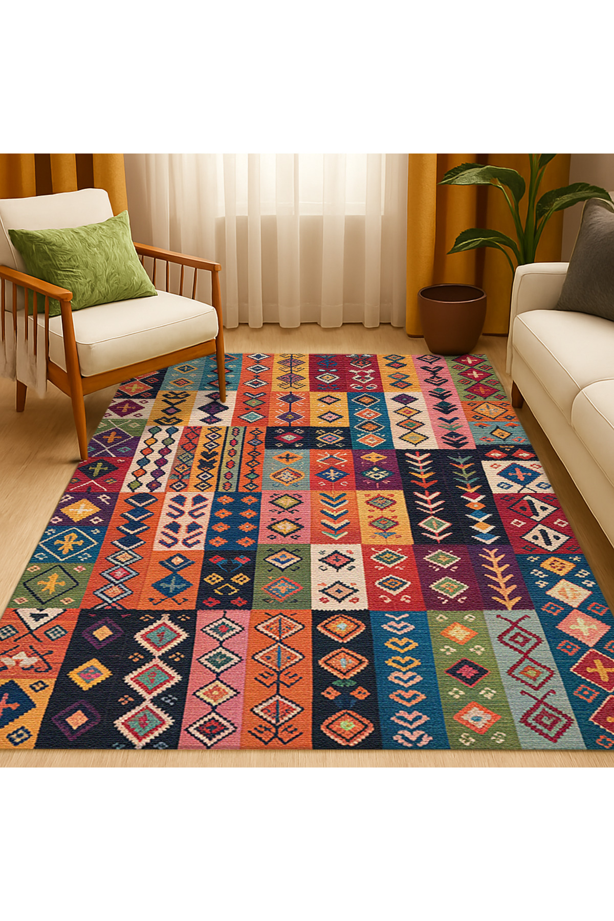 Çok Renkli Geometrik Şekilli Şönil Halı – Salon ve Mutfak Halısı Çok Renkli Geometrik Şekilli Şönil Halı – Salon ve Mutfak Halısı zon_235 100 x 300