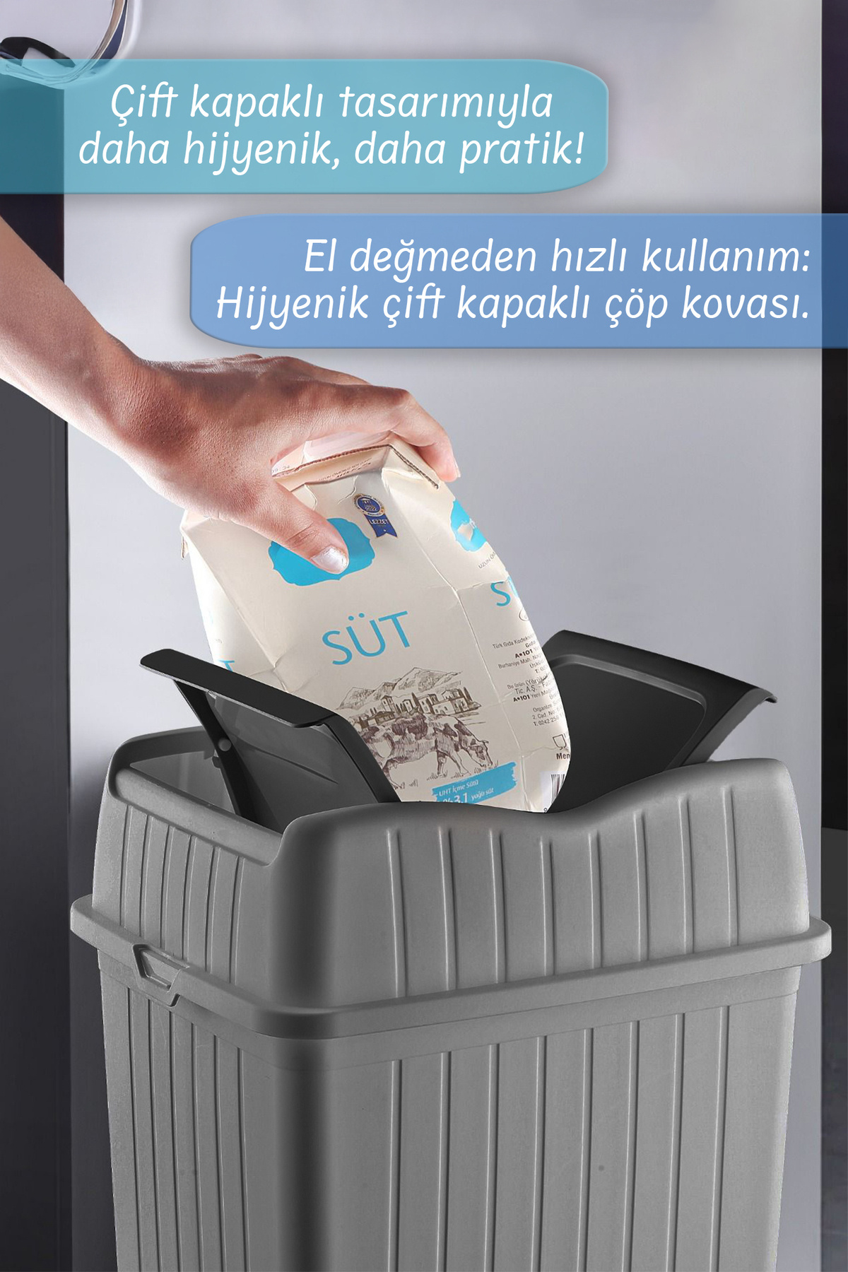 22 L - Çift Kapaklı Slim Çöp Kovası - Dekoratif Ev Ofis Banyo & Mutfak Düzenleyici Çöp Kutusu Gri 22 L - Çift Kapaklı Slim Çöp Kovası - Dekoratif Ev Ofis Banyo & Mutfak Düzenleyici Çöp Kutusu Gri MXP3 تک سایز
