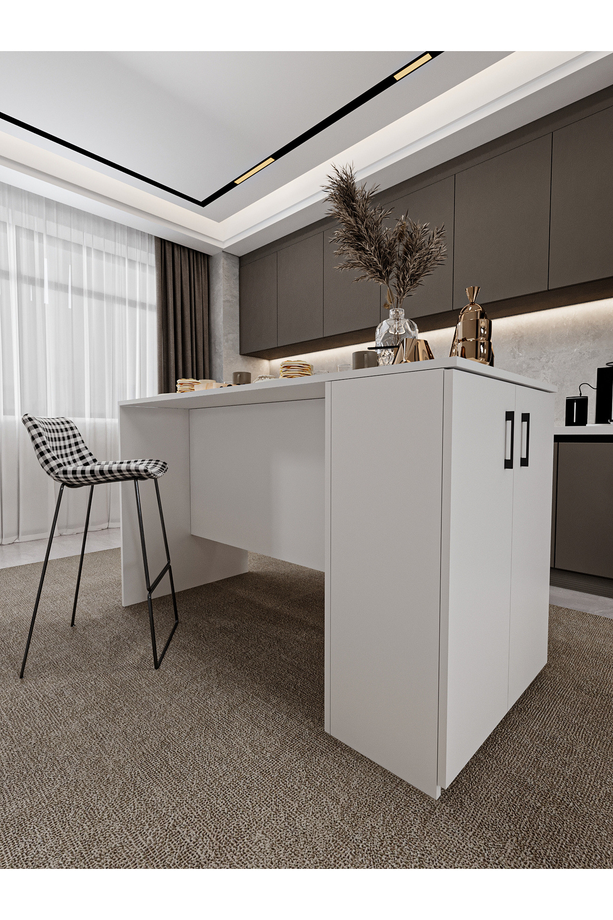 %100 MDFLAM 150cm Dolaplı Yüksek Mutfak Adası Yemek ve Bar Masası MA-04 %100 MDFLAM 150cm Dolaplı Yüksek Mutfak Adası Yemek ve Bar Masası MA-04 تک سایز