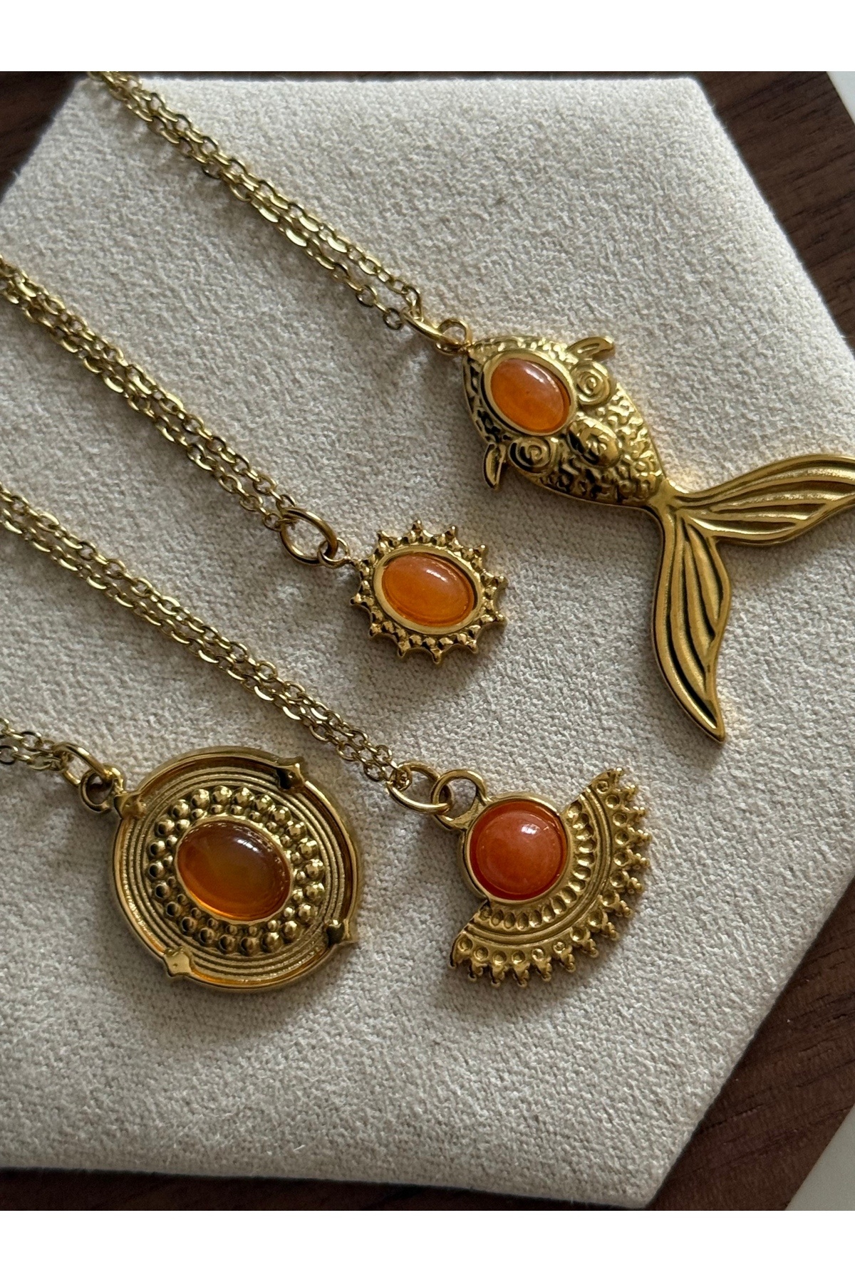 Altın Kaplama Çelik Vintage Yarım Ay Figürlü Kolye – Turuncu Taşlı Altın Kaplama Çelik Vintage Yarım Ay Figürlü Kolye – Turuncu Taşlı FAN-TRN-002 Standart
