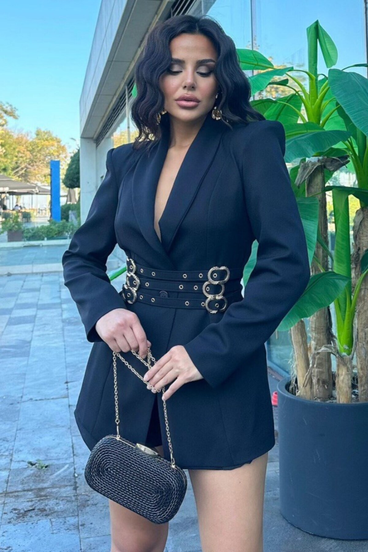 Kadın Blazer Ceket Şık Kruvaze Yaka Vatkalı Gold Kemer Detaylı Ceket Kadın Blazer Ceket Şık Kruvaze Yaka Vatkalı Gold Kemer Detaylı Ceket PRA-13070737-517936 42
