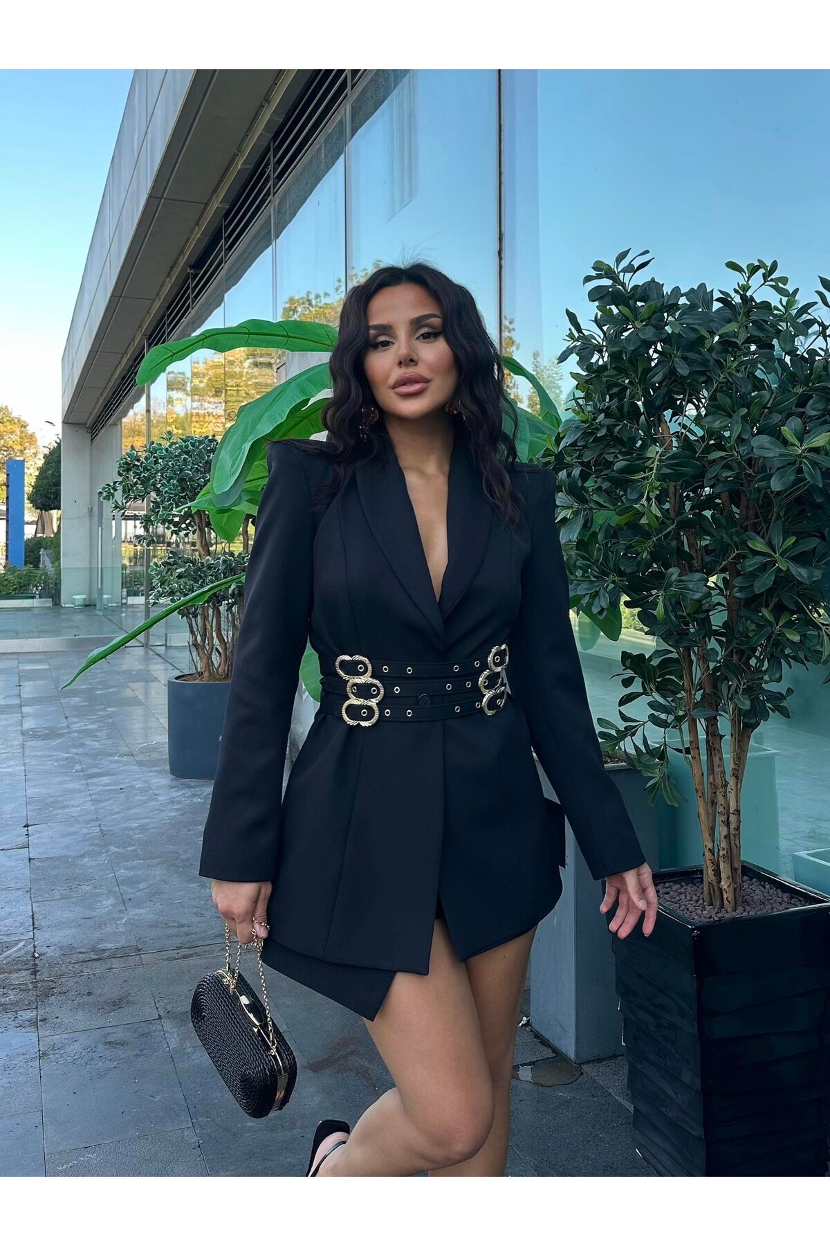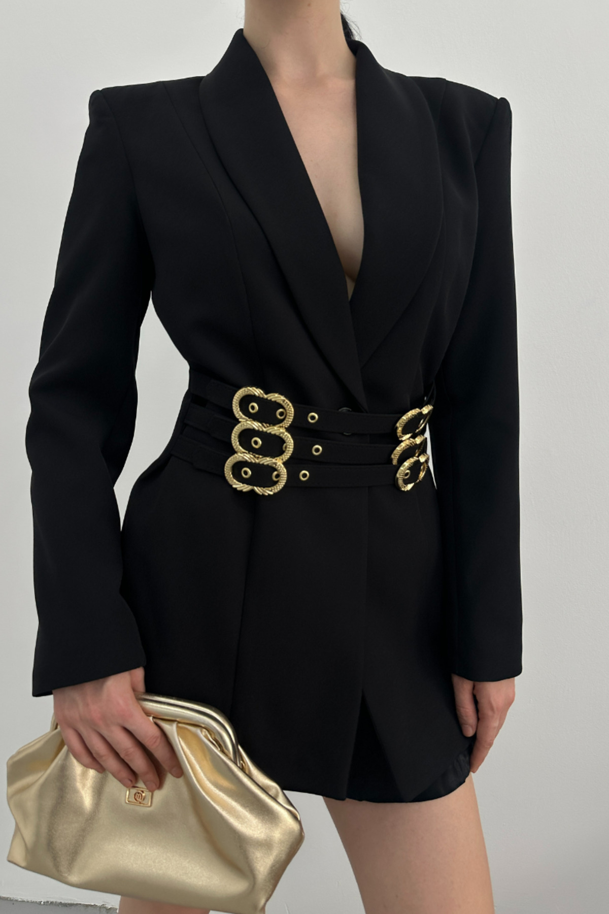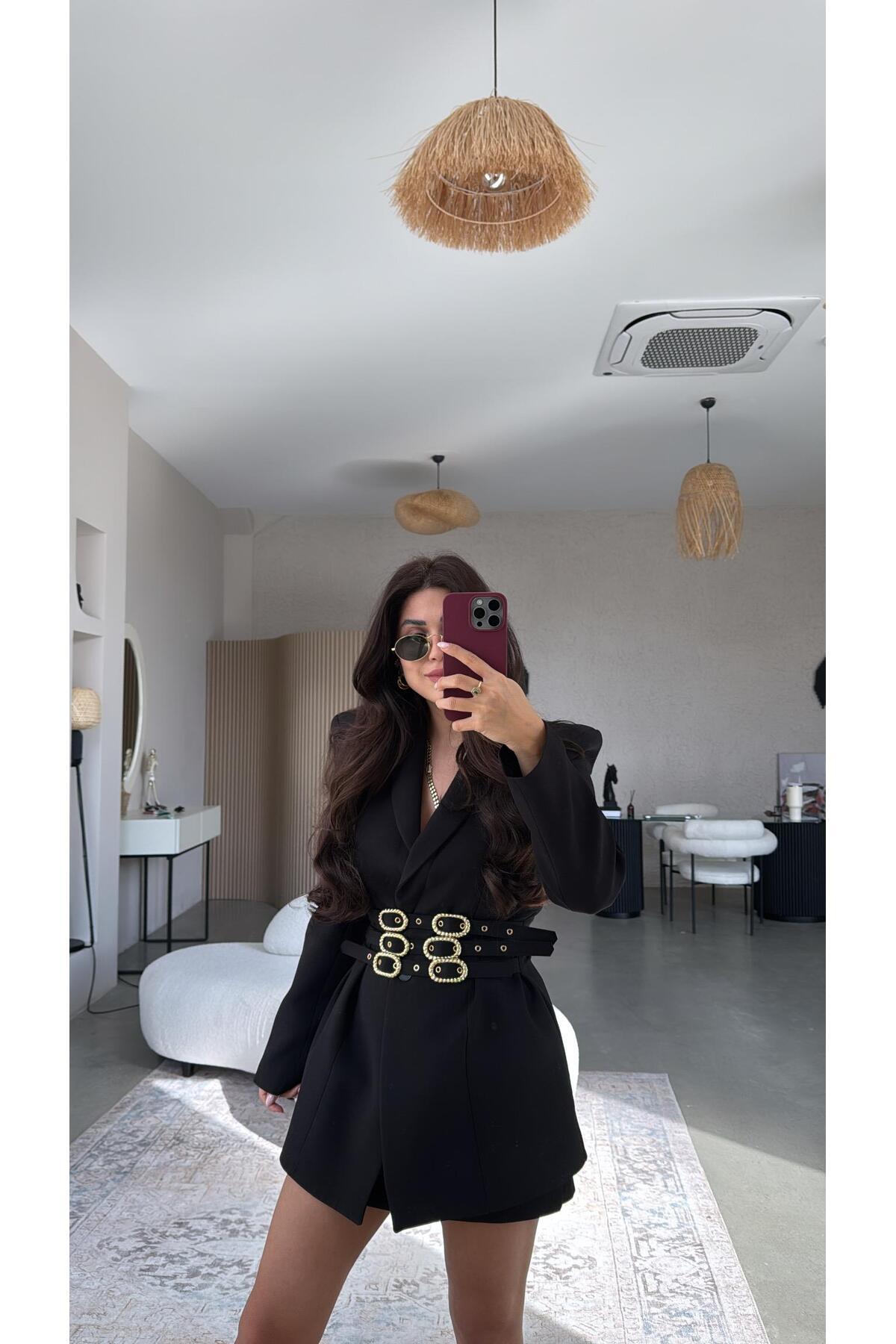 Kadın Blazer Ceket Şık Kruvaze Yaka Vatkalı Gold Kemer Detaylı Ceket Kadın Blazer Ceket Şık Kruvaze Yaka Vatkalı Gold Kemer Detaylı Ceket PRA-13070737-618693 42