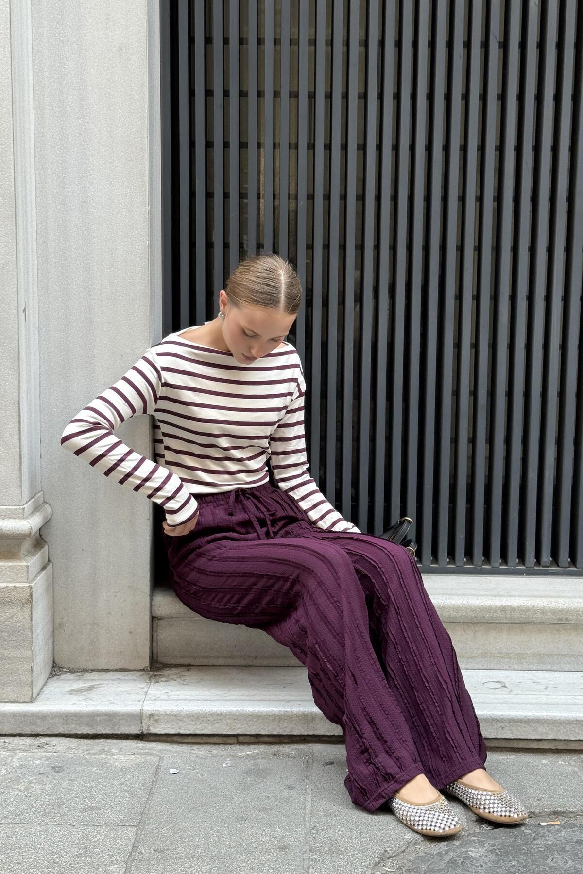 Geniş Paça Pileli Belden Bağlamalı Pantlon Mürdüm Geniş Paça Pileli Belden Bağlamalı Pantlon Mürdüm 251301PNTX XL