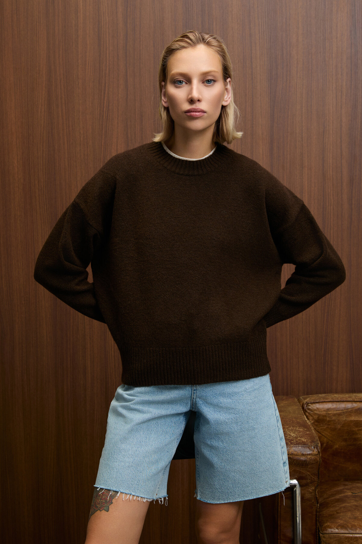NANNA Kadın Oversize Fit Yumuşacık Kaşmir Tuşesinde Bisiklet yaka Kalın Triko Kırmızı Kazak NANNA Kadın Oversize Fit Yumuşacık Kaşmir Tuşesinde Bisiklet yaka Kalın Triko Kırmızı Kazak NANNA01082024 XL