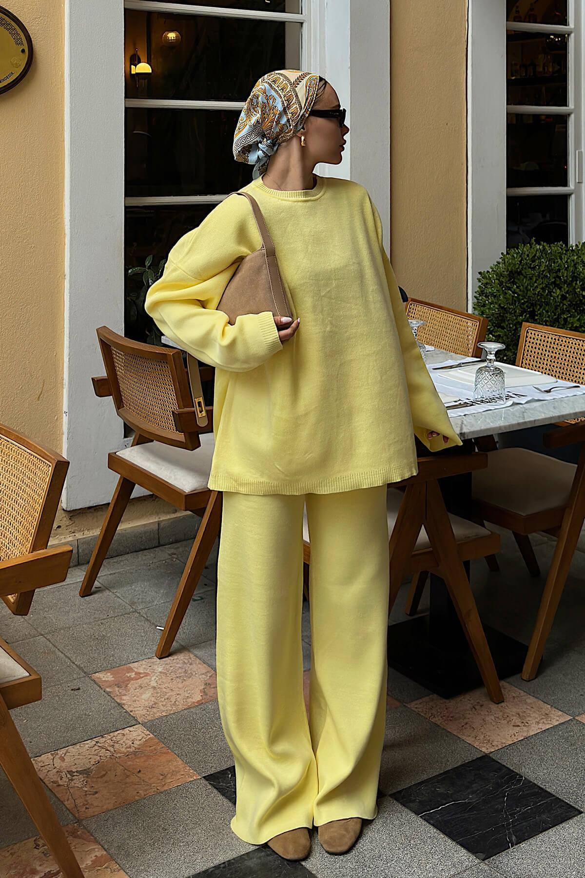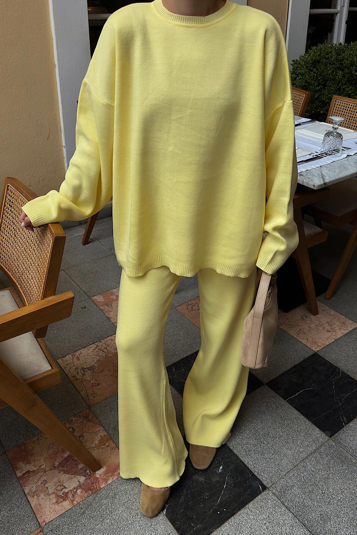 Sarı Bisiklet Yaka Oversize Kazak-Pantolon Örgü Kadın Alt-Üst Takım Sarı Bisiklet Yaka Oversize Kazak-Pantolon Örgü Kadın Alt-Üst Takım 44854 Standart