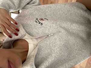 BELLE Kadın Nakış Detaylı Yarım Fermuarlı Dik Yakalı Regular Fit Grimelanj Sweatshirt BELLE Kadın Nakış Detaylı Yarım Fermuarlı Dik Yakalı Regular Fit Grimelanj Sweatshirt BELLE01012025 XL