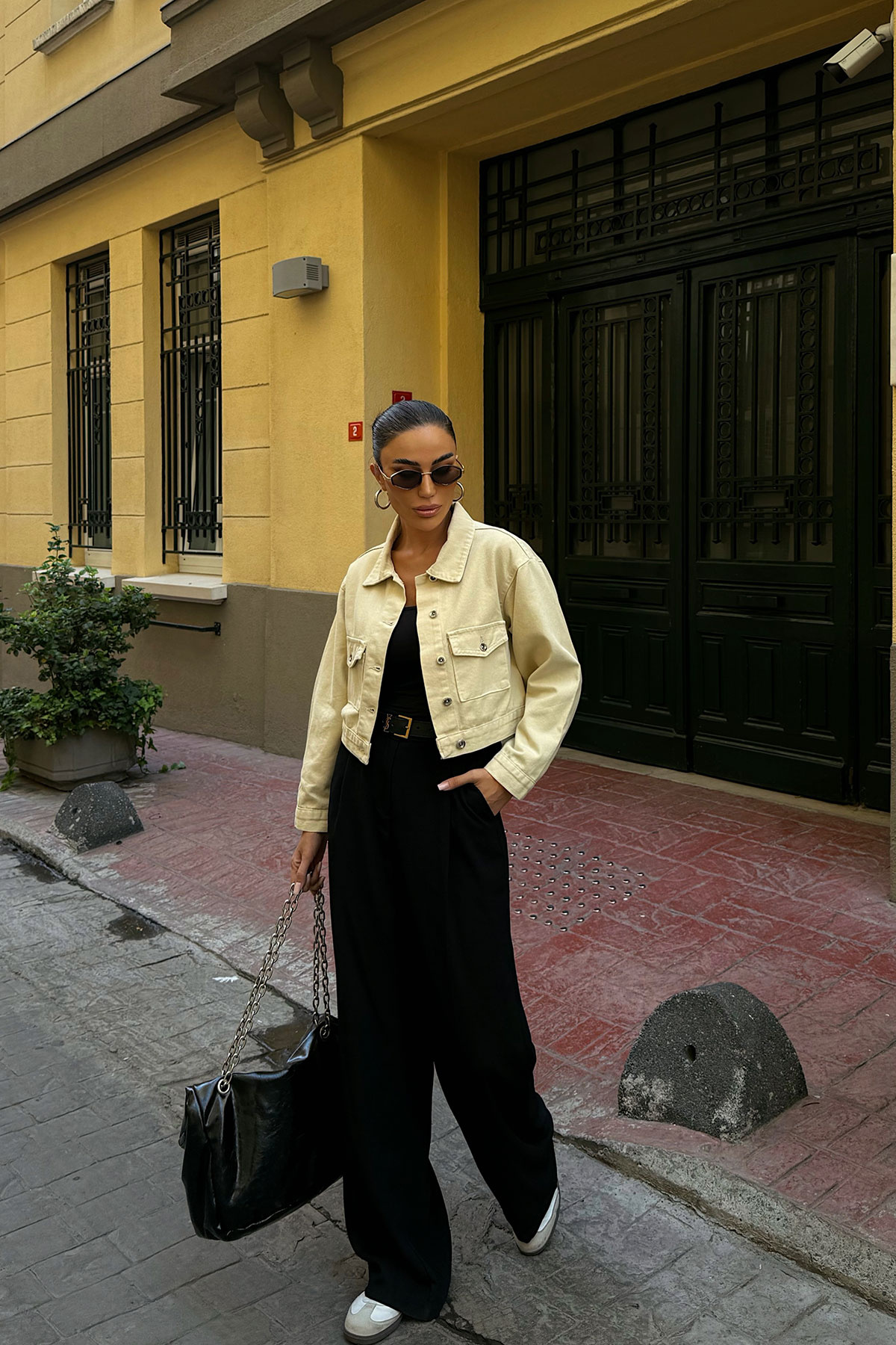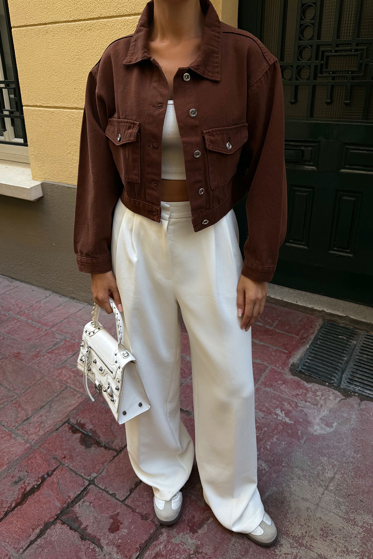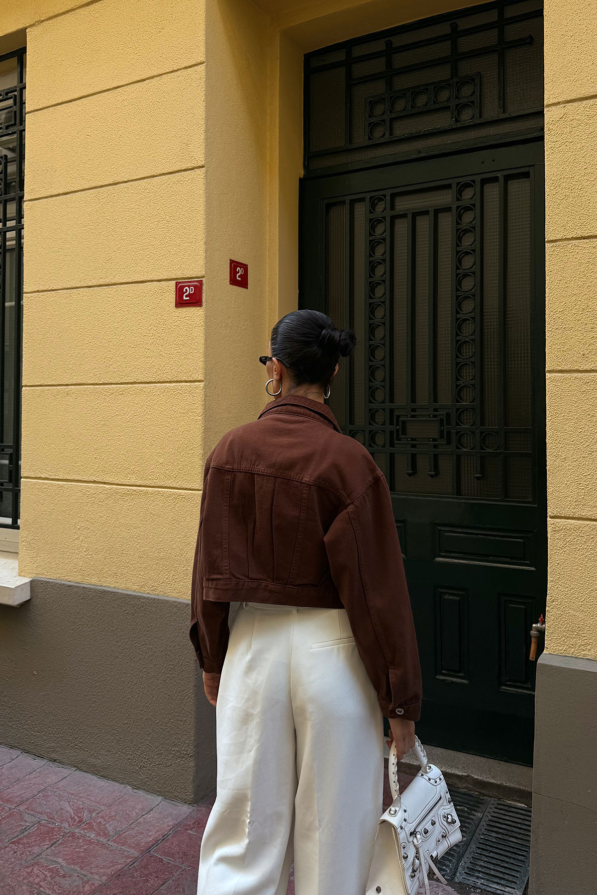 Kadın Kahverengi Çift Cep Denim Crop Ceket BCDF-255419 Kadın Kahverengi Çift Cep Denim Crop Ceket BCDF-255419 40
