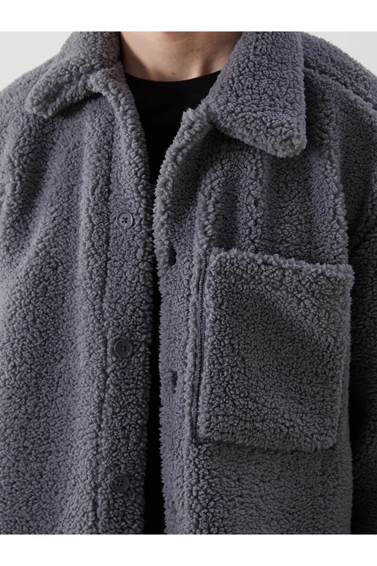 Ekru Rahat Kalıp Uzun Kollu Pelüş Erkek Gömlek Ceket Ekru Rahat Kalıp Uzun Kollu Pelüş Erkek Gömlek Ceket Q00029 2XL