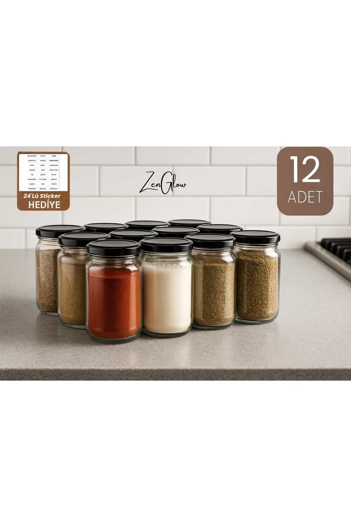 12’li Cam Baharatlık Seti - Metal Kapaklı Kavanoz Baharat Saklama Kabı Mutfak Düzenleyici 370 ml 12’li Cam Baharatlık Seti - Metal Kapaklı Kavanoz Baharat Saklama Kabı Mutfak Düzenleyici 370 ml 12xblckZenEA تک سایز