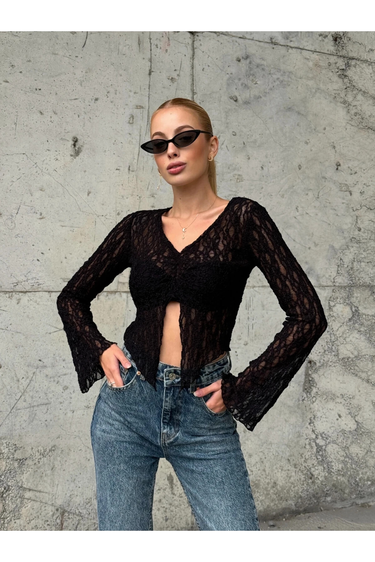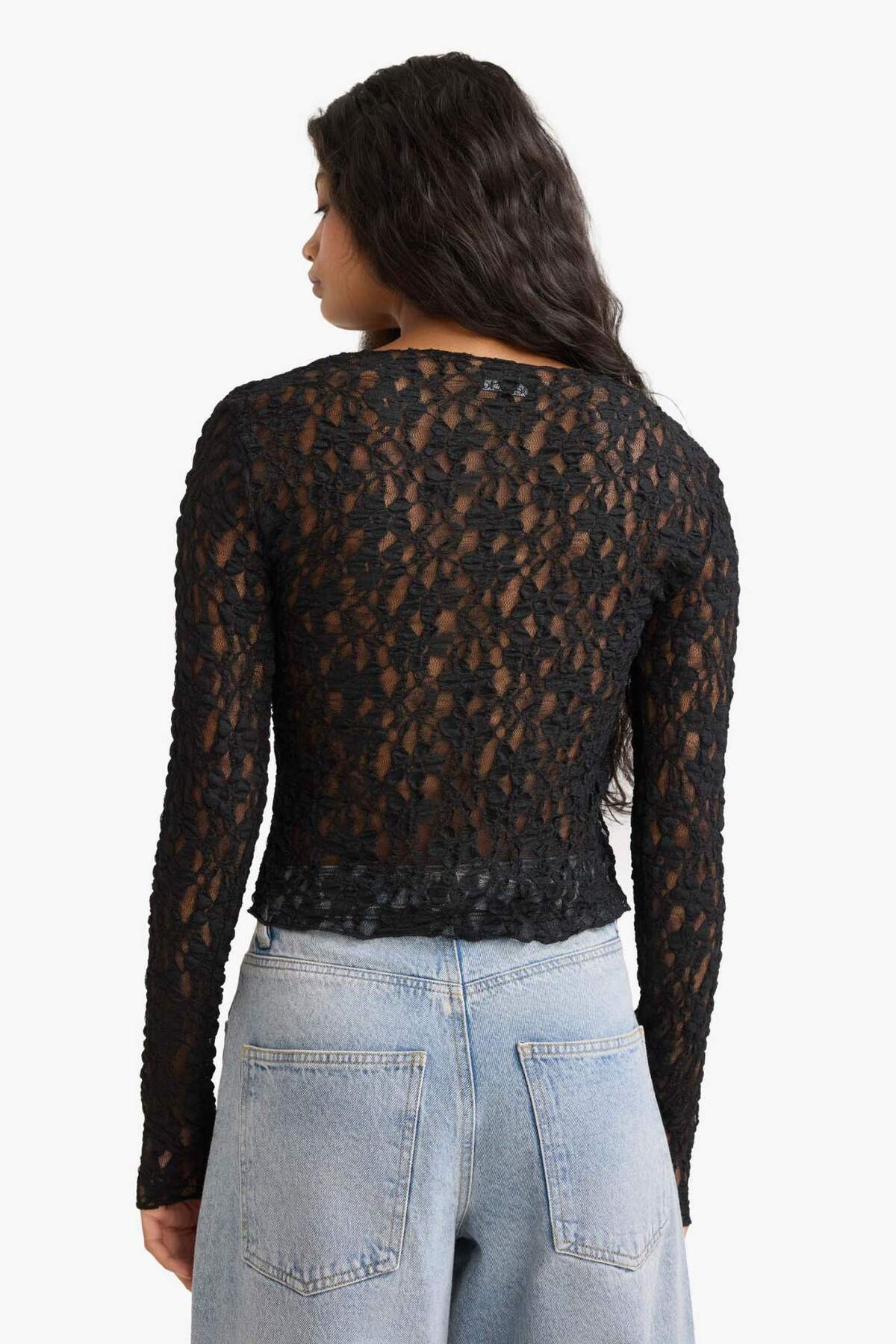 A Kesim V Yaka Dantel Uzun Kollu Tişört F9509AX25AU A Kesim V Yaka Dantel Uzun Kollu Tişört F9509AX25AU L