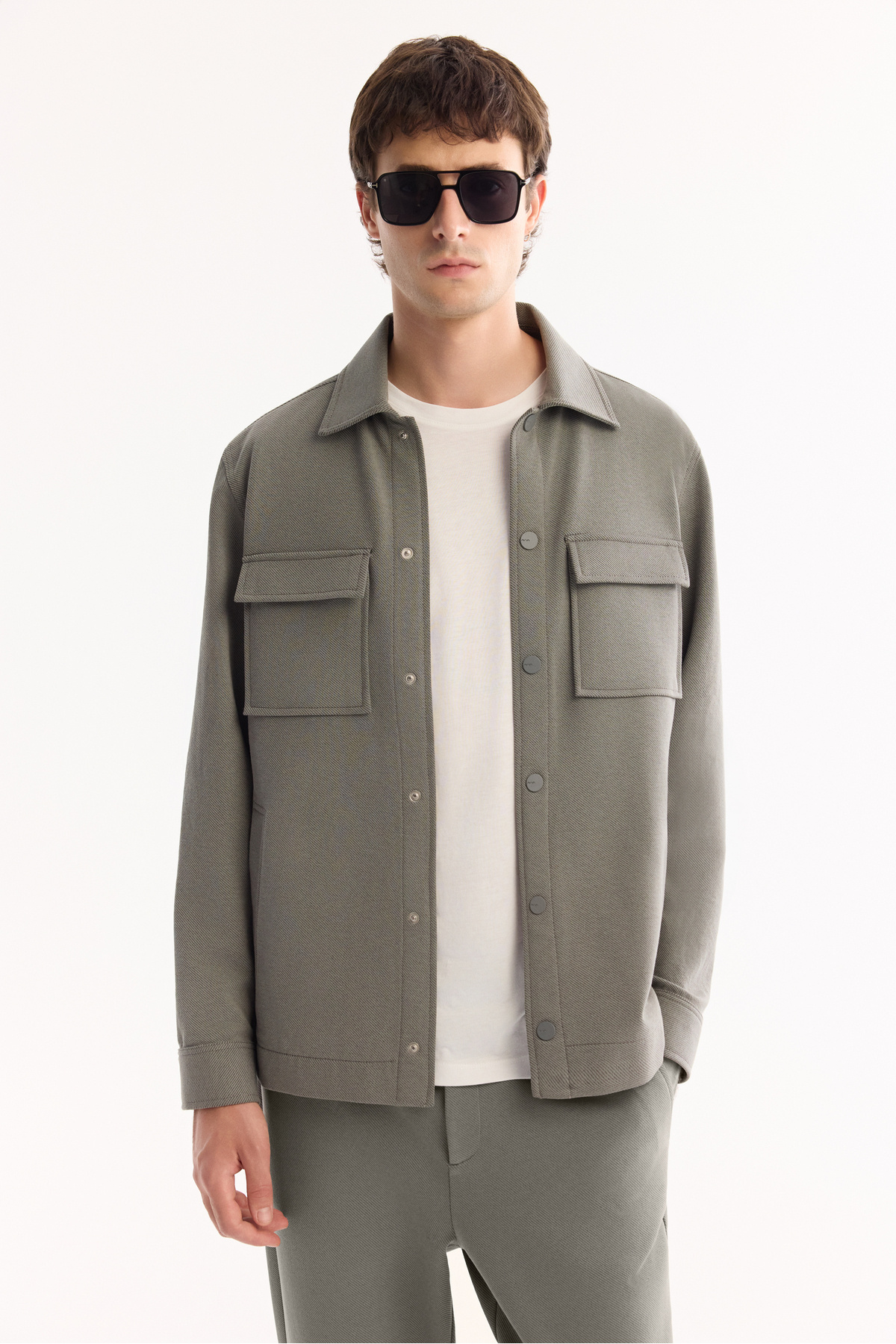 Erkek Gri Yeşil Klasik Yaka Jersey Pamuklu Gömlek Ceket A52Y2092 Erkek Gri Yeşil Klasik Yaka Jersey Pamuklu Gömlek Ceket A52Y2092 3XL