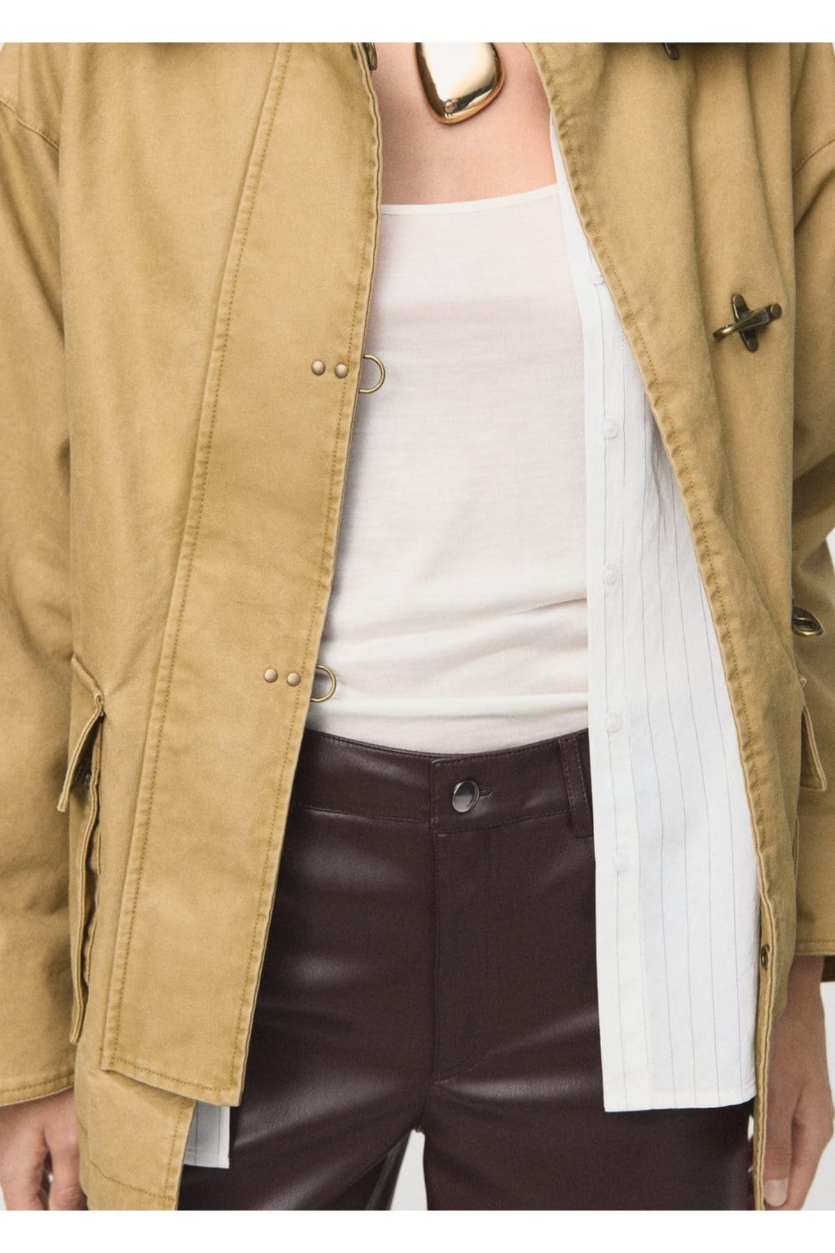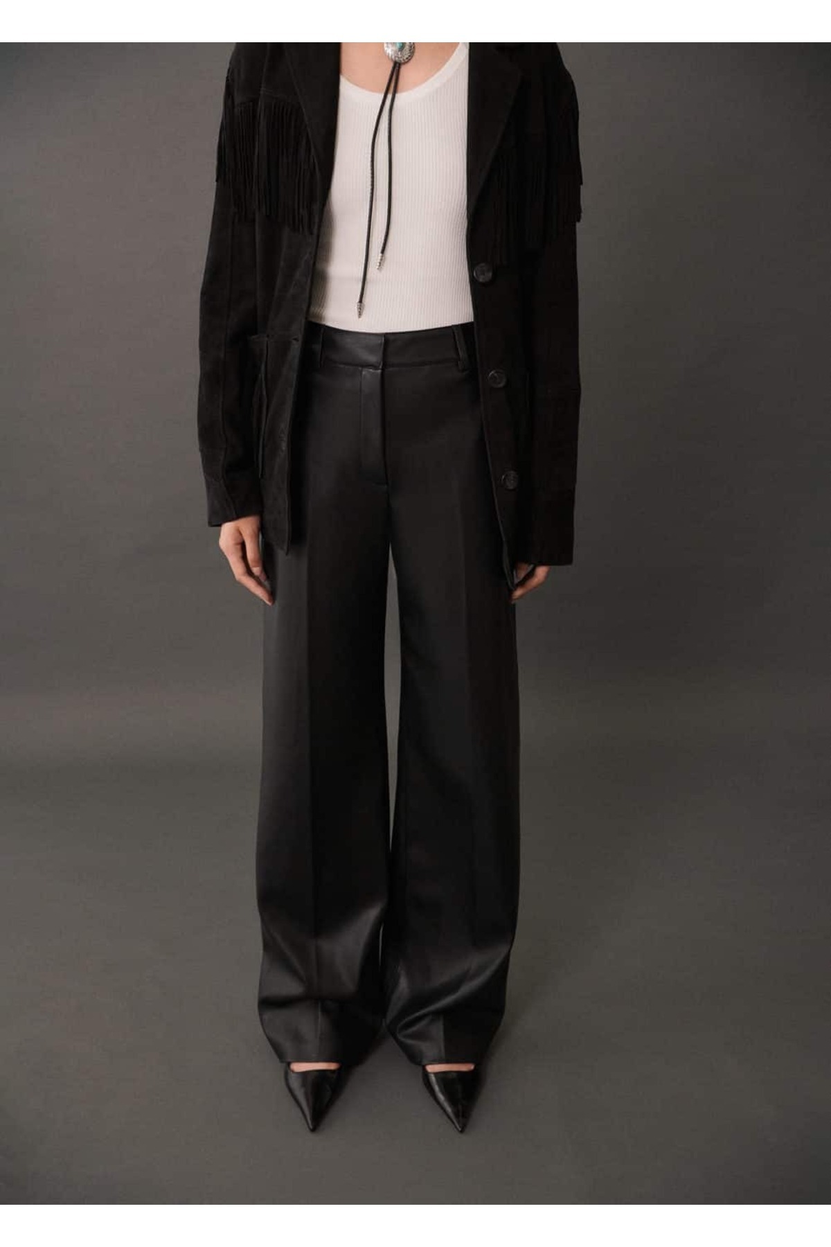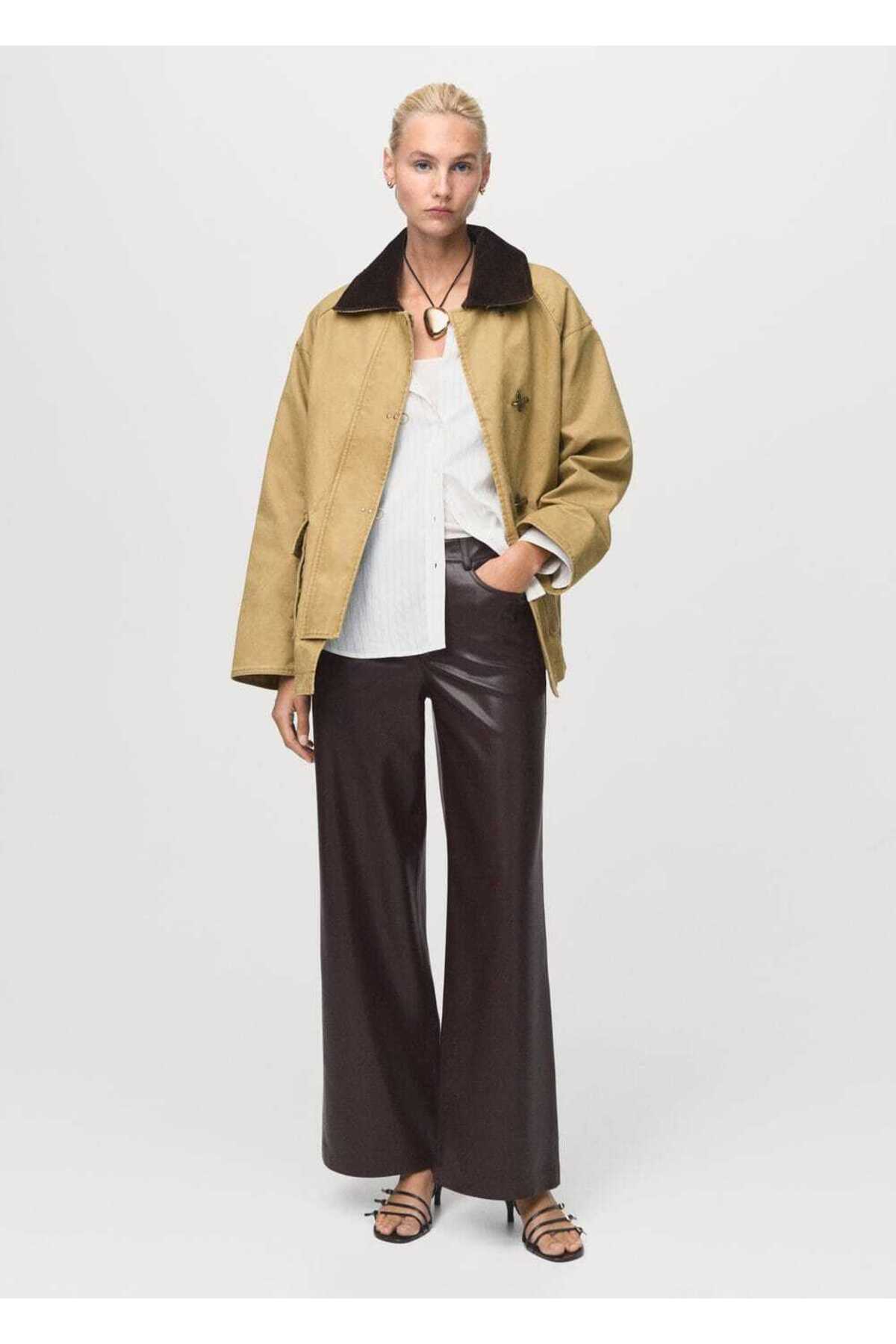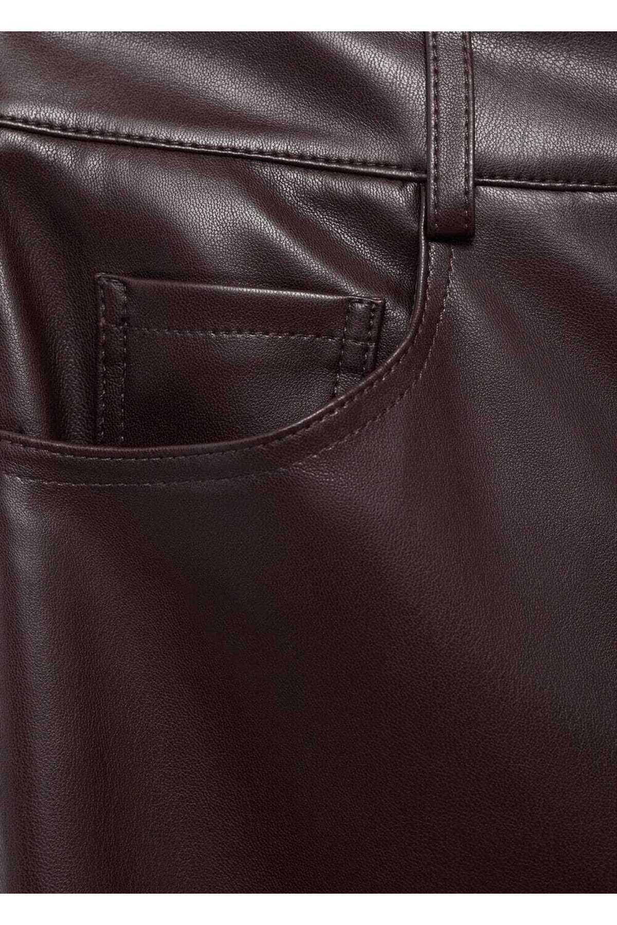 Deri görünümlü düz kesim pantolon Deri görünümlü düz kesim pantolon 17006735 42